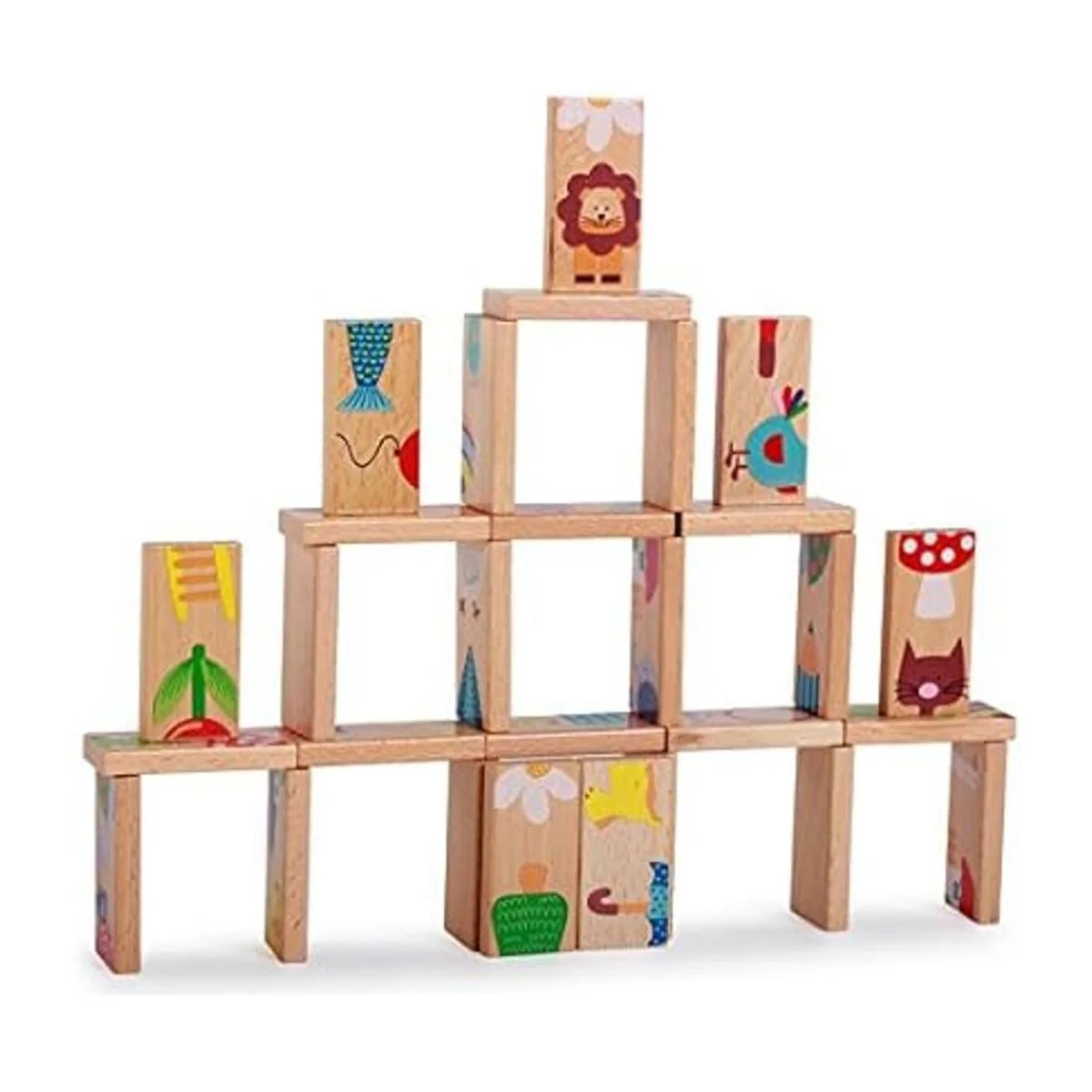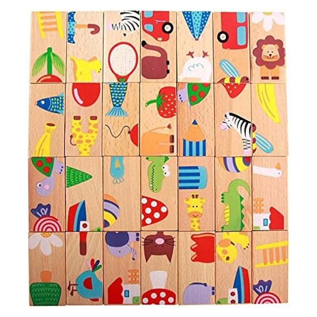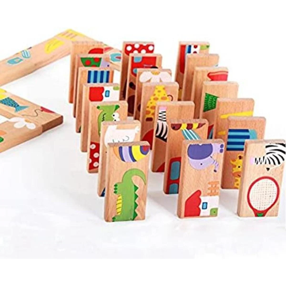 GracesDawn 28 piezas de juguete educativo de madera dominó animales rompecabezas niños juego regalo