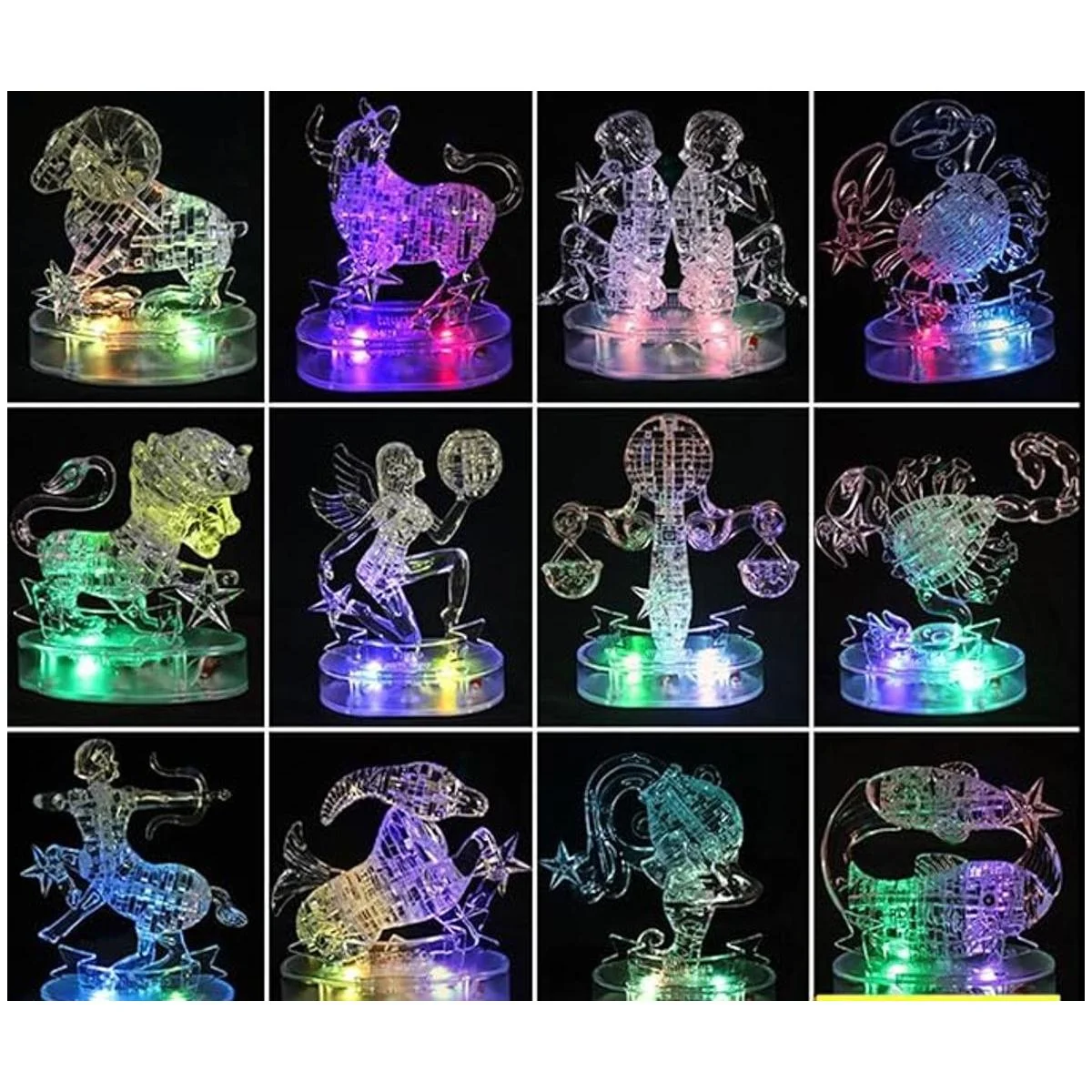 GracesDawn Rompecabezas 3D de lujo de 12 constelaciones de cristal, decoración de cristal colorido Leo