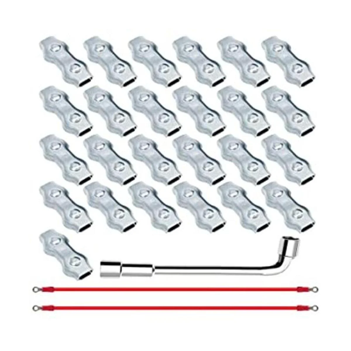 GradenNow Kit de conectores de cuerda de polietileno M5 mejorado, 25 piezas, empalmador de cables de acero galvanizado para vallas eléctricas 3 conectores de polietileno a poliropo de silicona, cables conductores de cobre herramienta de manga