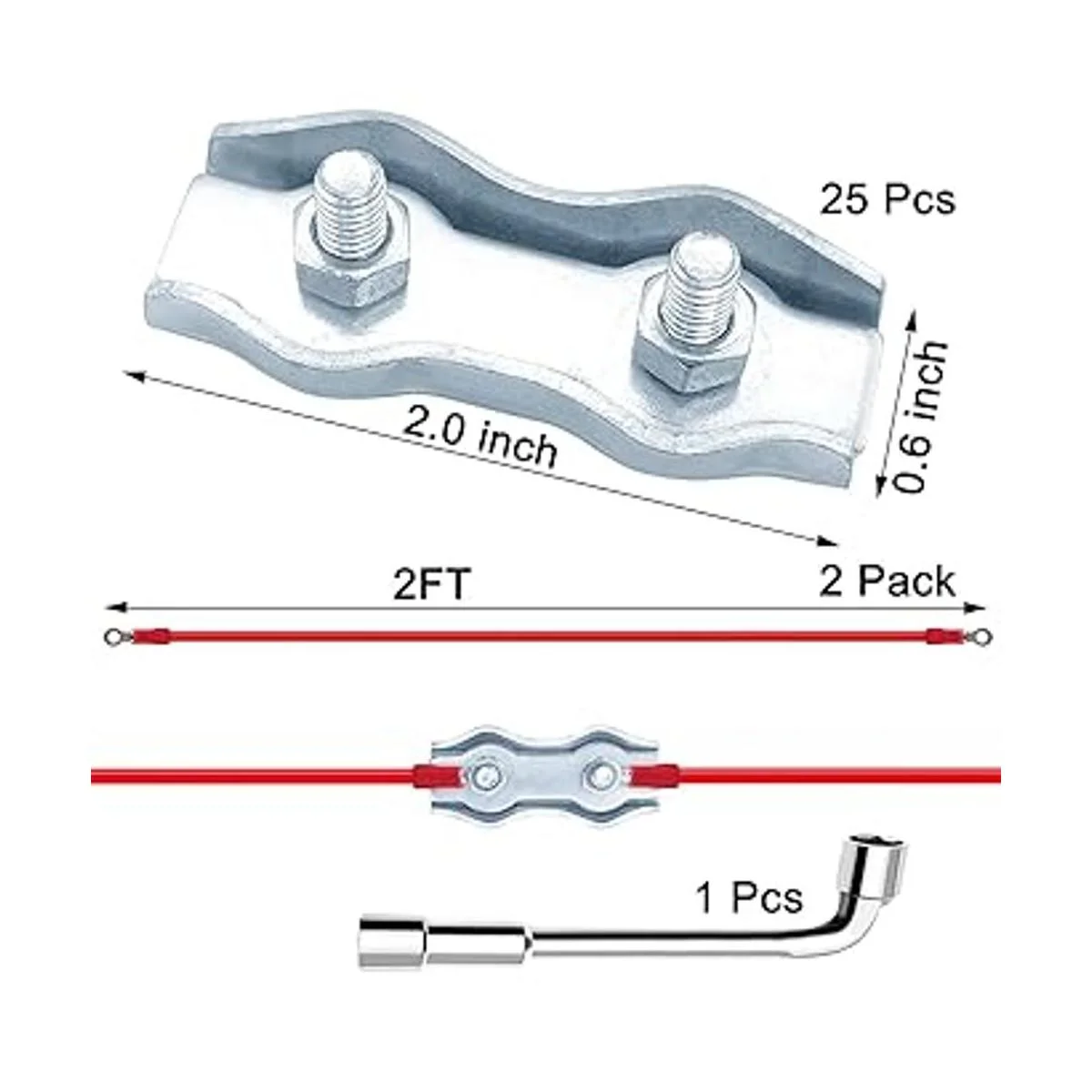 Material de alta calidad: los conectores de cuerda de polietileno están hechos de acero galvanizado avanzado, con características duraderas, resistentes, reutilizables, ligeras, fuertes conductividades, larga vida útil. Los cables conductores están envueltos en material de silicona, que es resistente al envejecimiento, altas temperaturas y fuerte aislamiento. El cable conductor en el interior está hecho de alambre de cobre, tiene una fuerte conductividad. Estos te permiten reparar vallas de forma fácil y segura y cables de conexión para evitar pérdidas innecesarias.