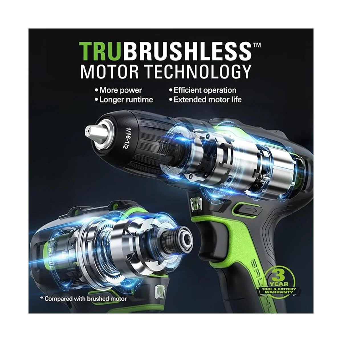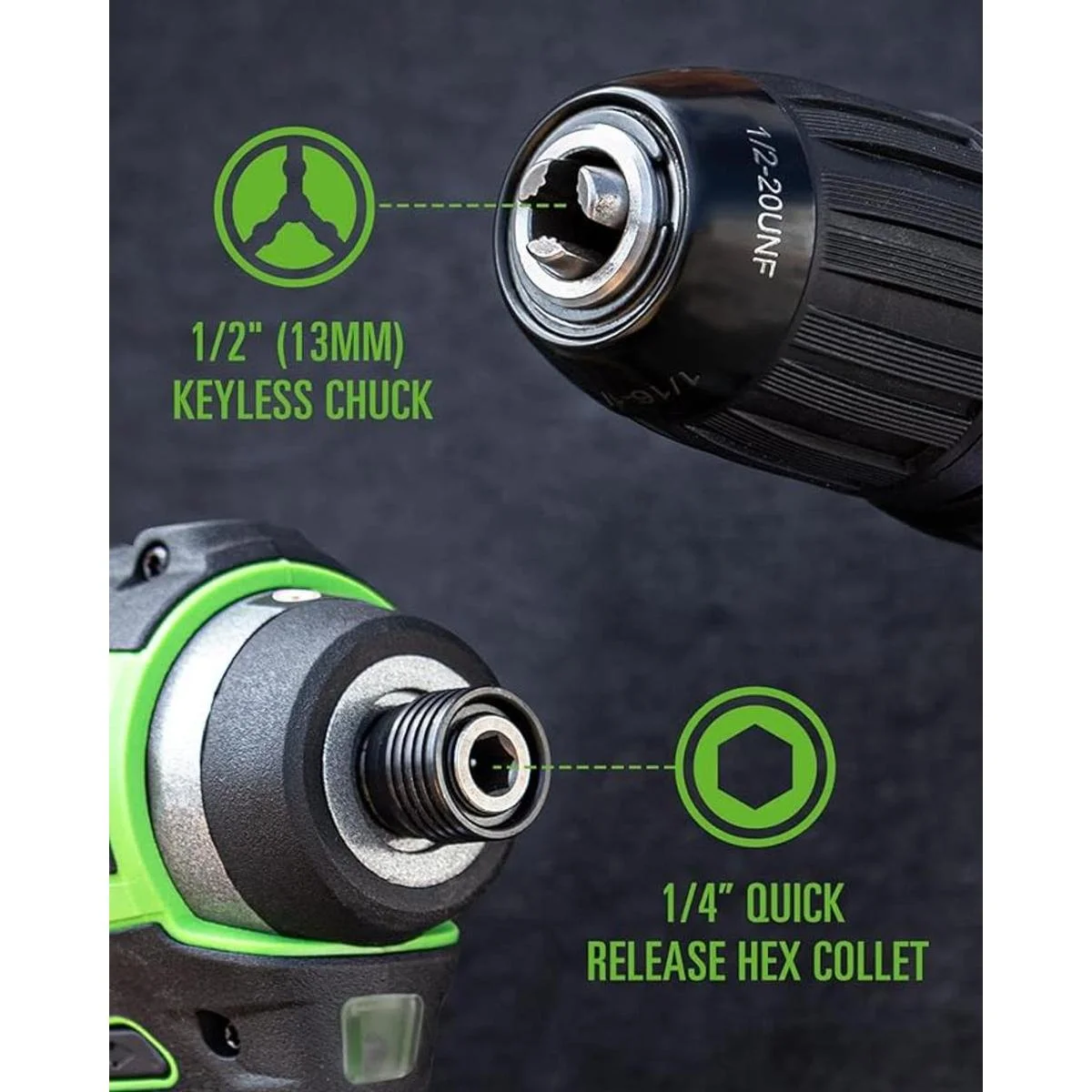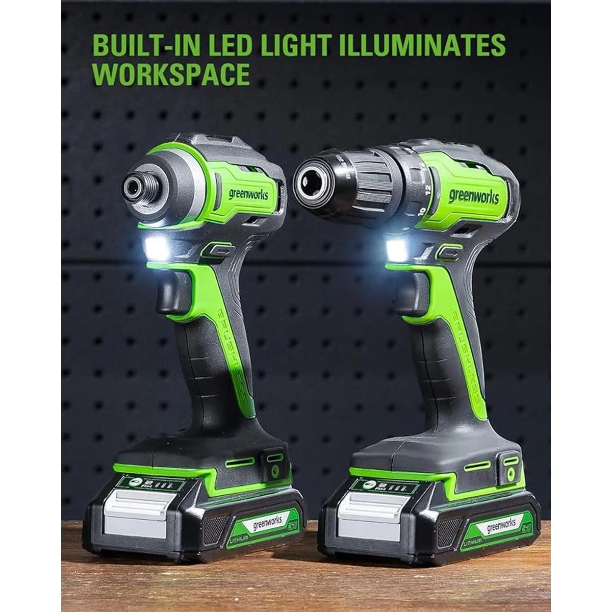 Grado profesional Greenworks Taladro inalámbrico sin escobillas de 24 V Max kit combinado de impacto, 2 baterías de 2.0 Ah, cargador rápido y bolsa incluida