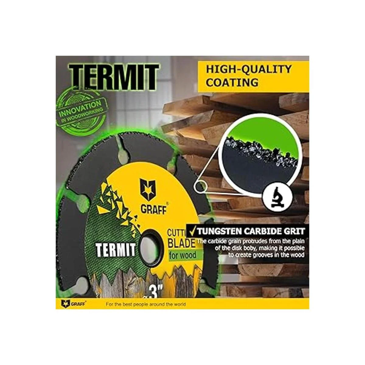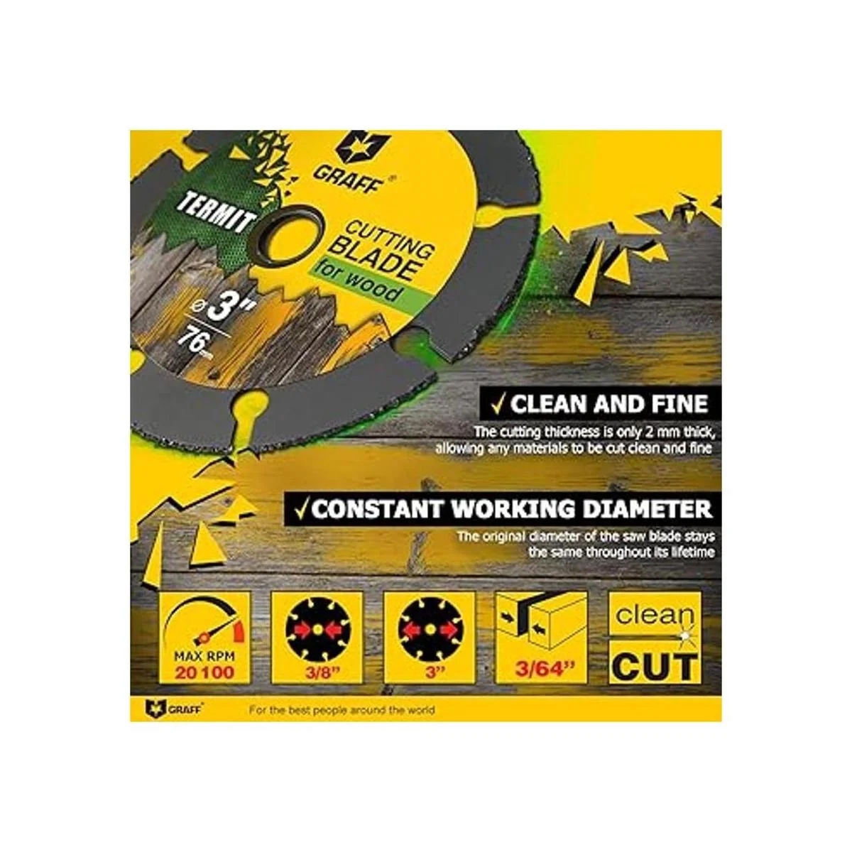GRAFF Termit Rueda de corte de 3 pulgadas para madera, laminado, plástico, disco de corte de madera para amoladora de troqueles de 38 pulgadas, carburo de tungsteno, 2.992 in