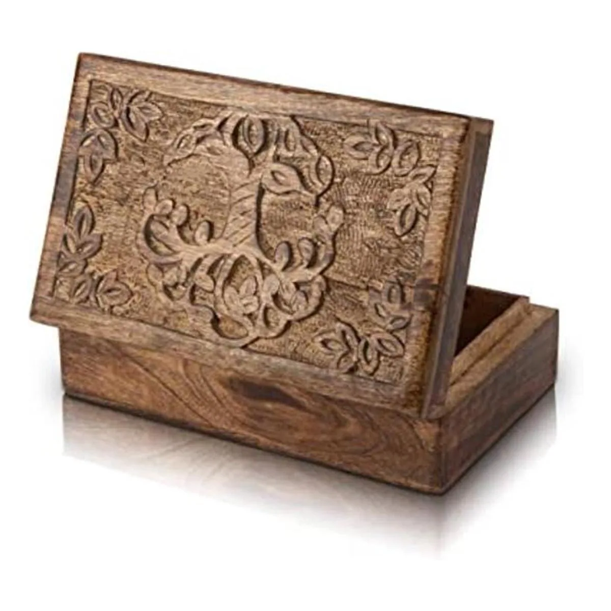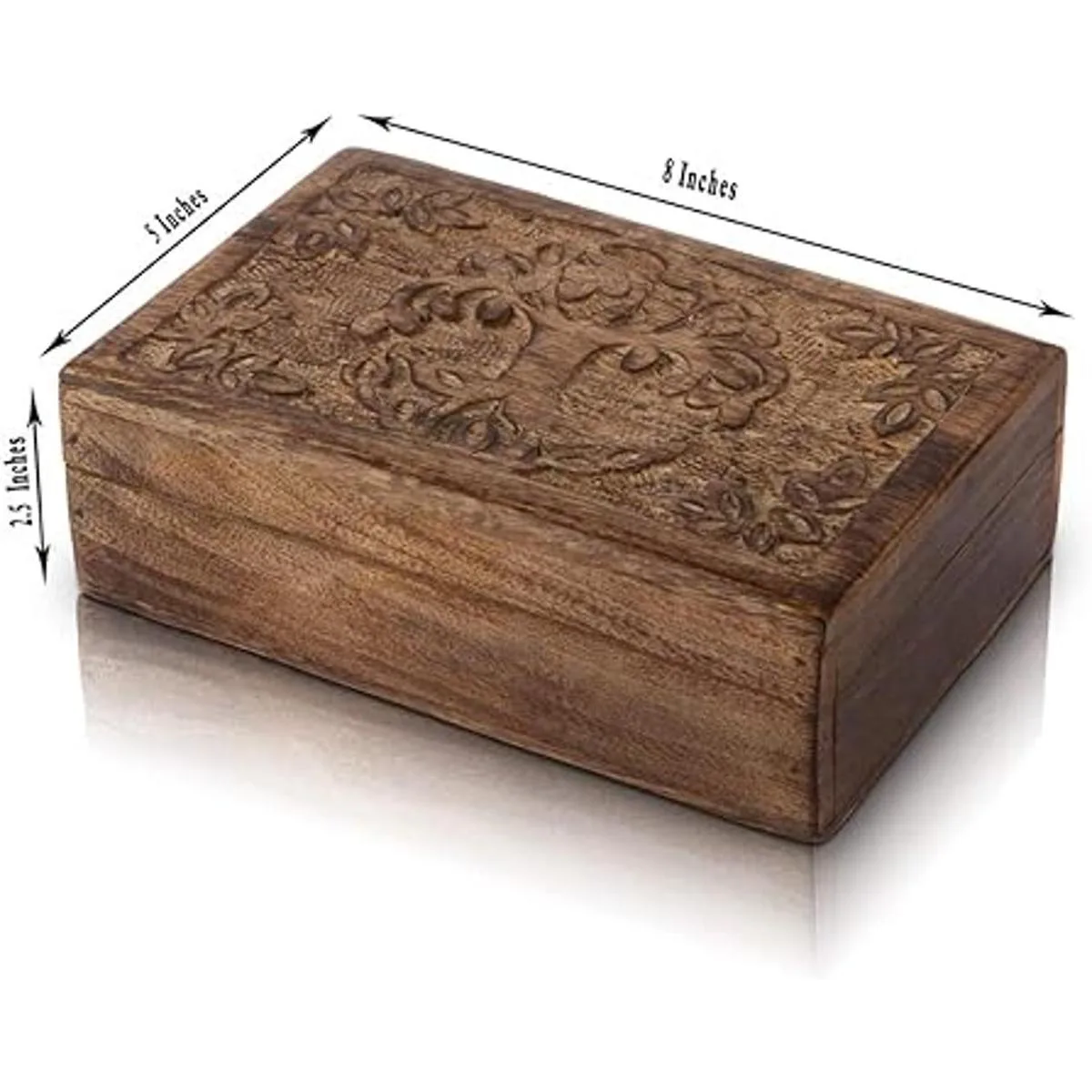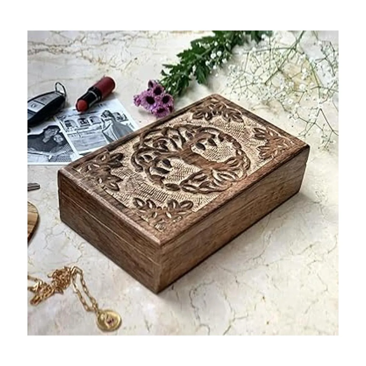 Gran regalo de cumpleaños hecho a mano decorativo joyero de madera para tallar árbol de la vida, organizador de joyas, caja de recuerdo, caja de regalo, caja de almacenamiento, regalo de inauguración de la casa