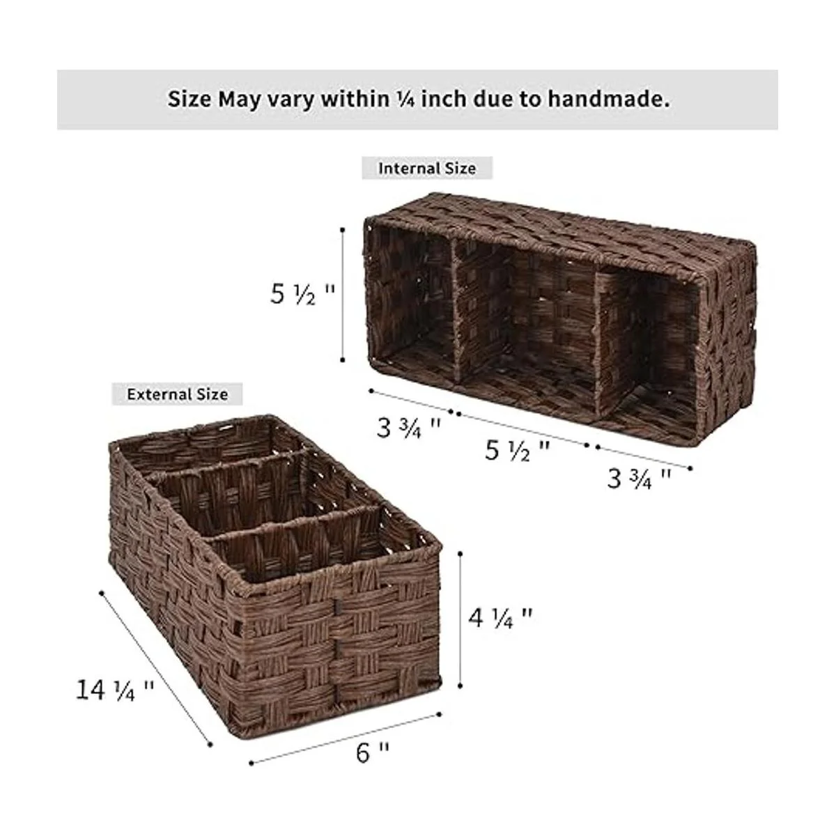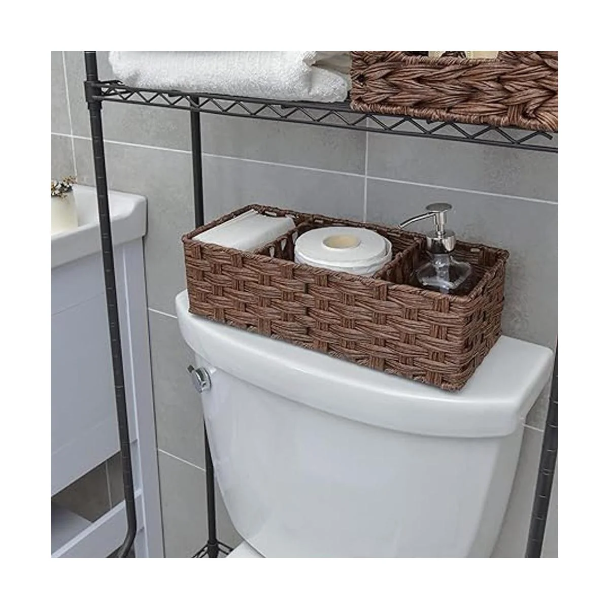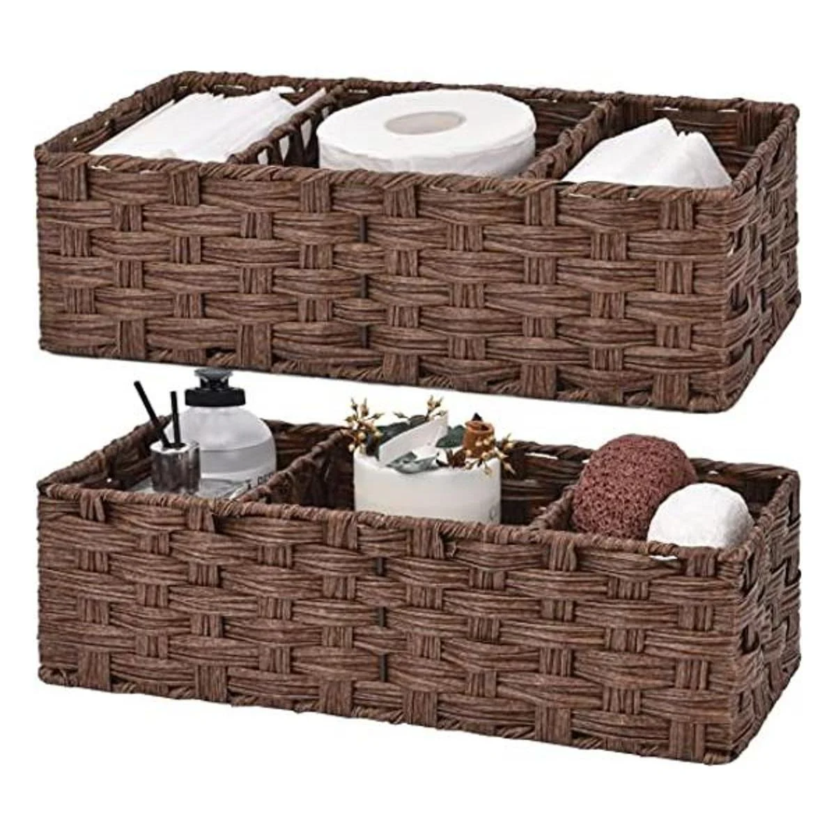 GRANNY SAYS Canastas de baño para organizar, cesta de almacenamiento de inodoro, impermeable, cesta de mimbre con 2 divisores, marrón, paquete de 2