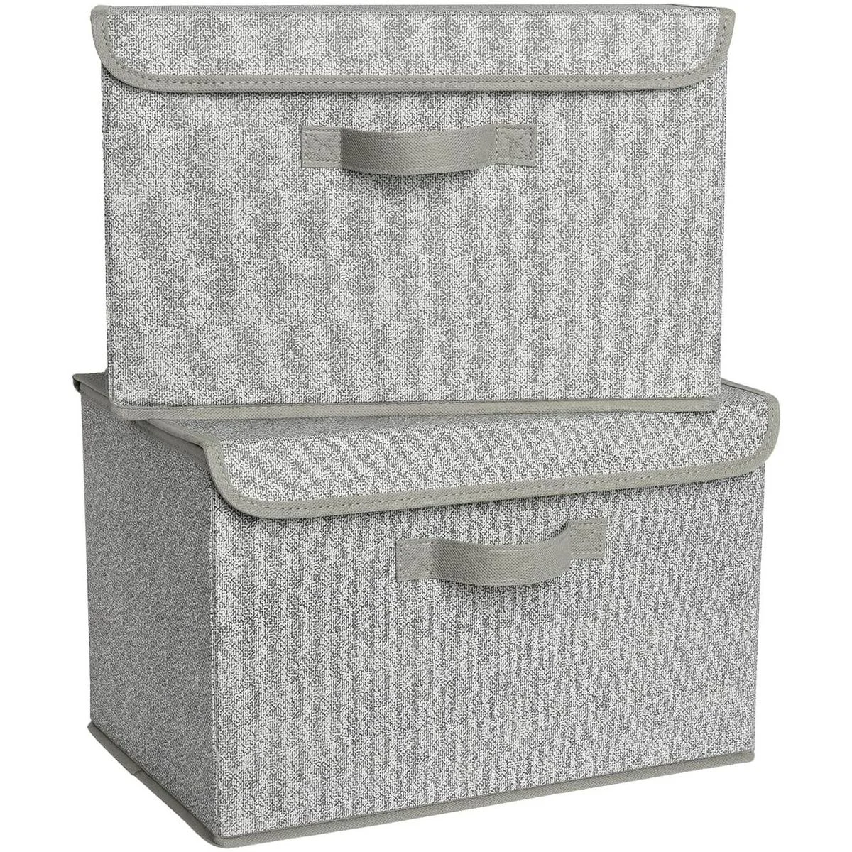 GRANNY SAYS Contenedores de almacenamiento con tapas, cajas de almacenamiento de tela, organizadores de armario y almacenamiento para ropa, cajas de almacenamiento grandes para organizar estantes de alambre, estantería, gris, paquete de 2