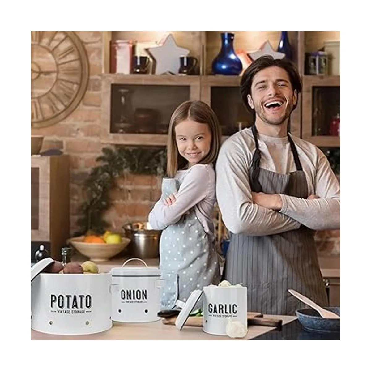 Mantén tus verduras frescas durante más tiempo: con mano de obra de primera clase, estos recipientes de almacenamiento de alimentos están pulidos y hechos de chapa de acero de alta gama, asegurando que todas tus patatas, cebollas, ajo y otras verduras se mantengan frescas durante largos períodos de tiempo.