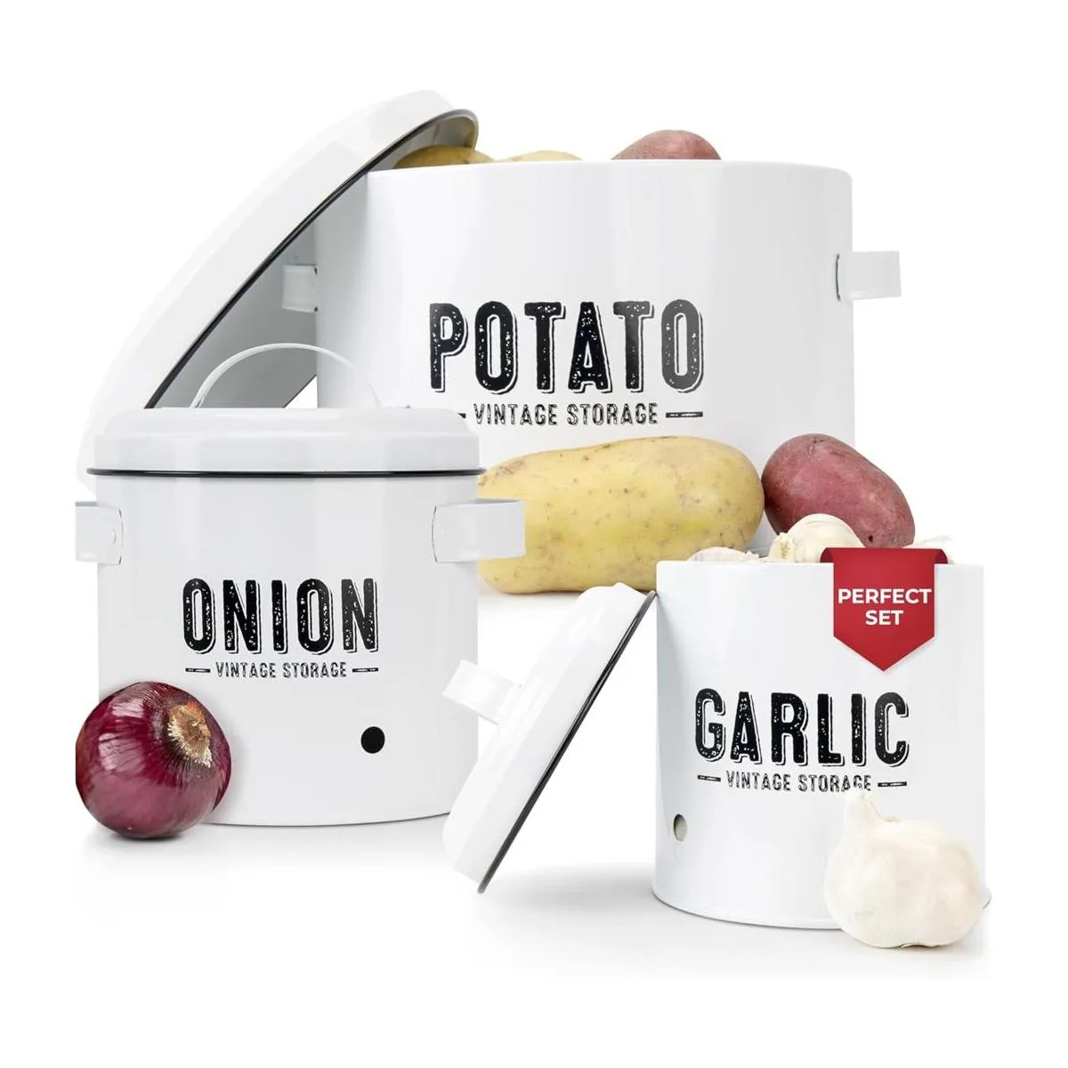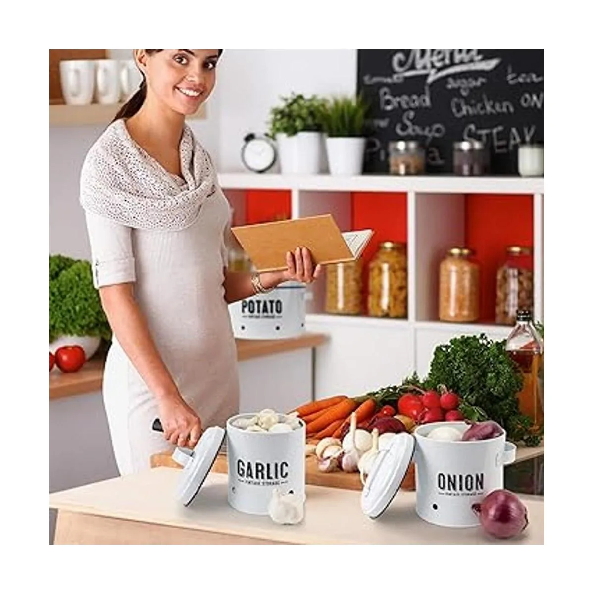 Granrosi Almacenamiento de papas para despensa, juegos de recipientes para encimera de cocina, recipientes de almacenamiento de cebolla, almacenamiento de ajo para encimera, contenedor de almacenamiento de papas y cebollas, contenedor de cebolla, contenedor de papas y papas