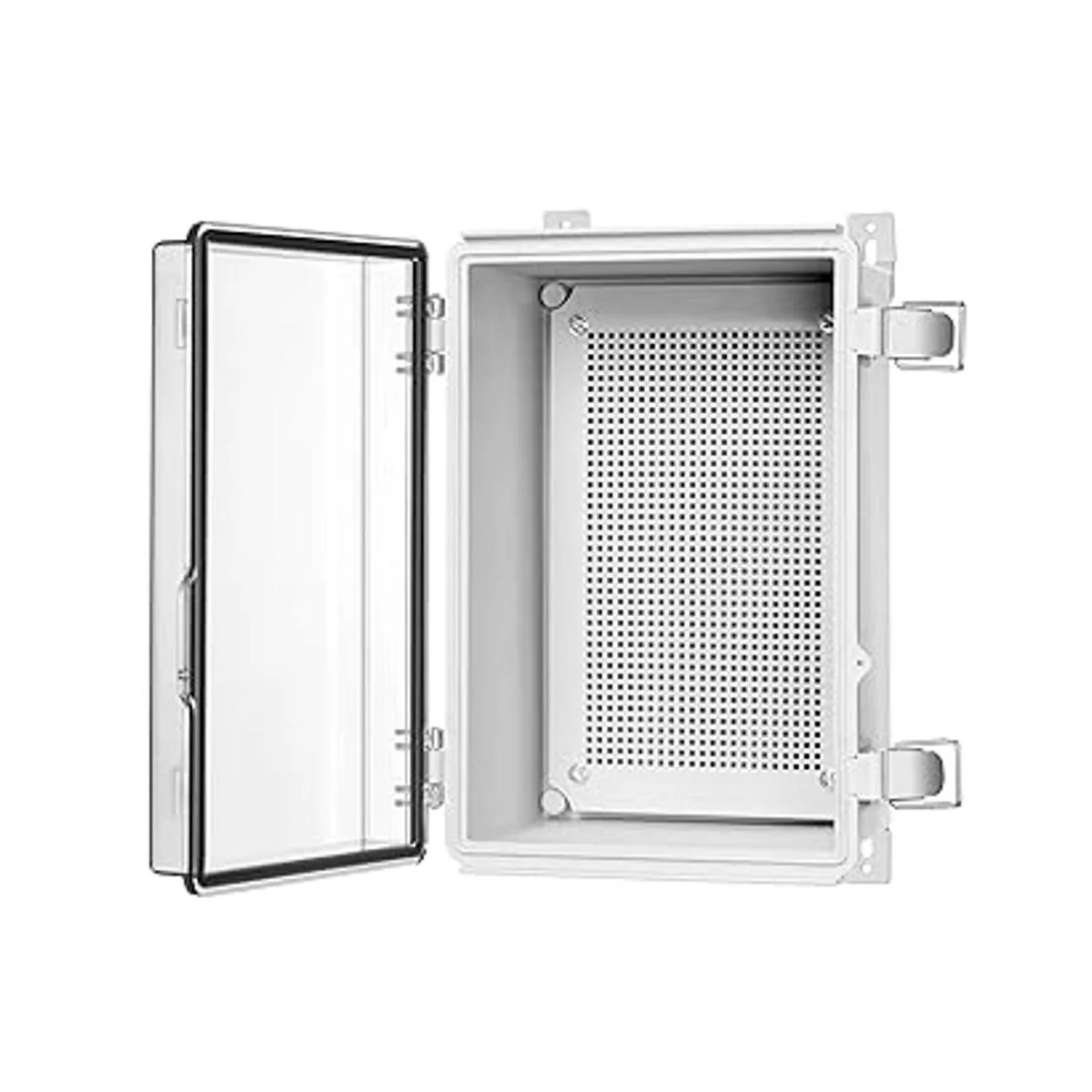 Gratury Caja de conexiones, cubierta transparente con bisagras, pestillo de acero inoxidable IP67, carcasa de plástico impermeable, con placa de montaje y soporte de pared, 11.4 x 7.5 x 5.5 pulgadas TC