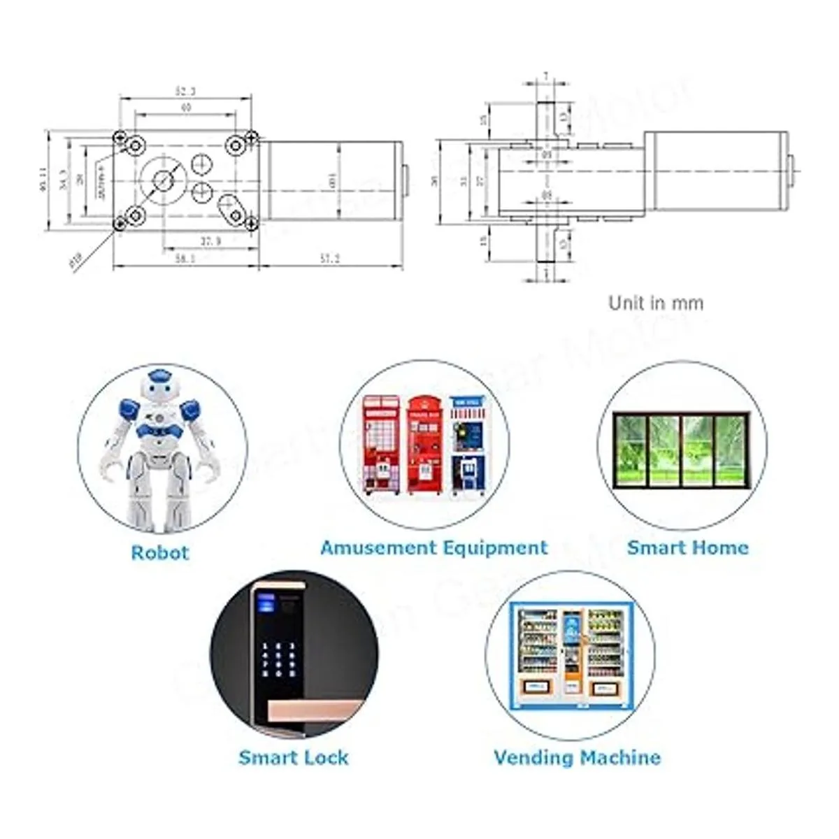 Alta torsión y menor ruido : cepillo de carbono largo de alta vida, diseño de engranajes de alta precisión, tamaño pequeño, alto par de torsión, bajo ruido, alta eficiencia.