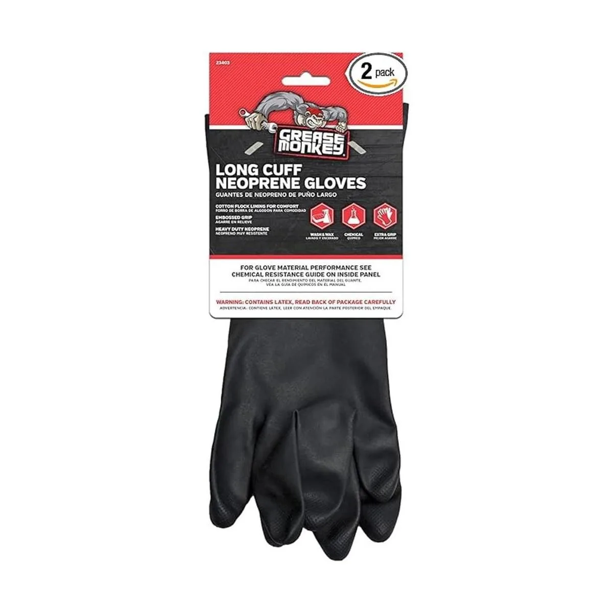 Grease Monkey Guantes largos de neopreno, grandes, para lavar platos, limpiar autos, manipular productos químicos o para un agarre adicional