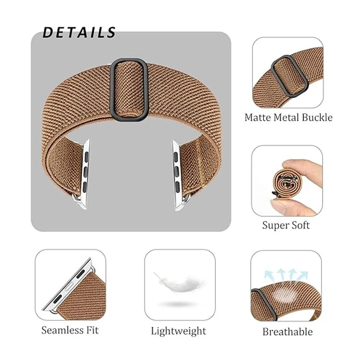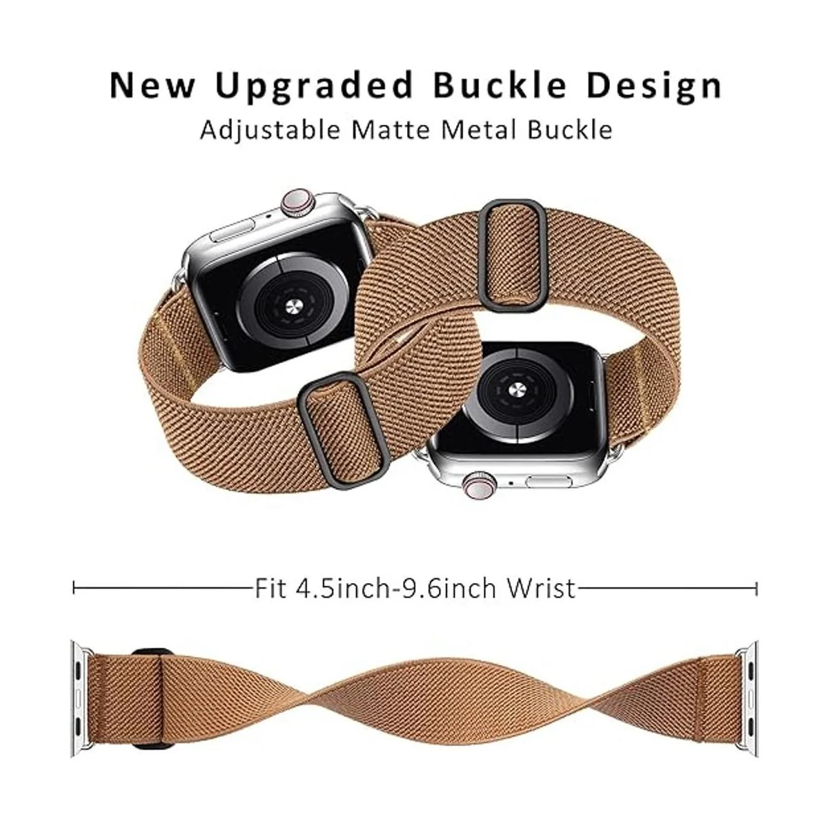 Greatfine Correa elástica Solo Loop compatible con Apple Watch Band de 1.73 pulgadas, 1.65 pulgadas, 1.73 pulgadas, correa trenzada de nailon elástica y hebilla ajustable, correa deportiva para mujeres y hombres, para iWatch Series 8, 7, 6, 5, 4, 3, 2, 1 SE Ultra, camello