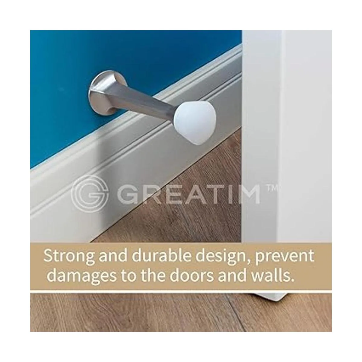 Greatim GTDS Tope de puerta rígido sólido de 3 pulgadas, tope de puerta fundido a presión de zinc, puntas de parachoques suaves, aleación de zinc, plata, paquete de 5 SN