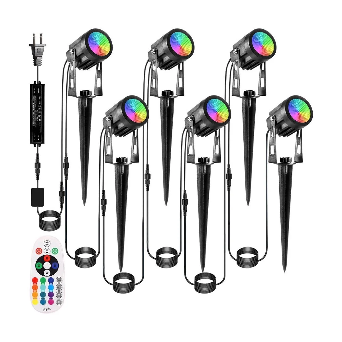 GreenClick Focos de Halloween RGB LED de bajo voltaje 6 en 1 con control remoto, 8 modos de 16 luces LED que cambian de color con transformador de 12 V IP65, impermeable, árbol de jardín al aire libre