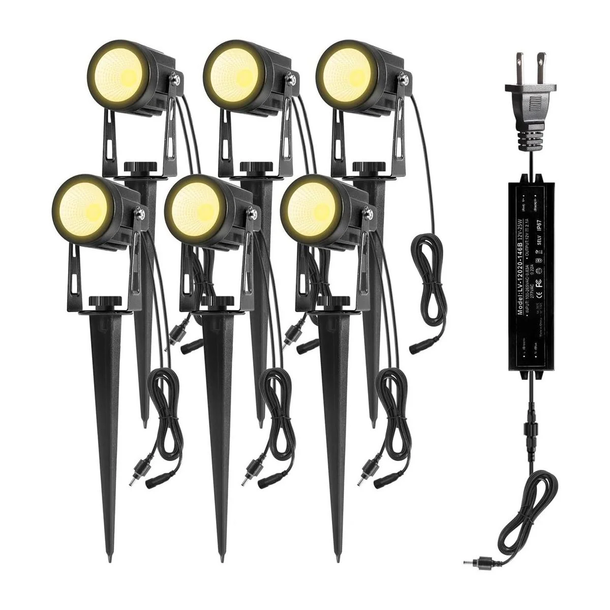 Greenclick Iluminación de paisaje, 3 W, 12 V, extensible, bajo voltaje, 6 en 1, luces de paisaje con transformador IP65, impermeable, 1800 lúmenes, foco exterior para paredes de jardín, árboles, camino, bandera de camino, blanco cálido
