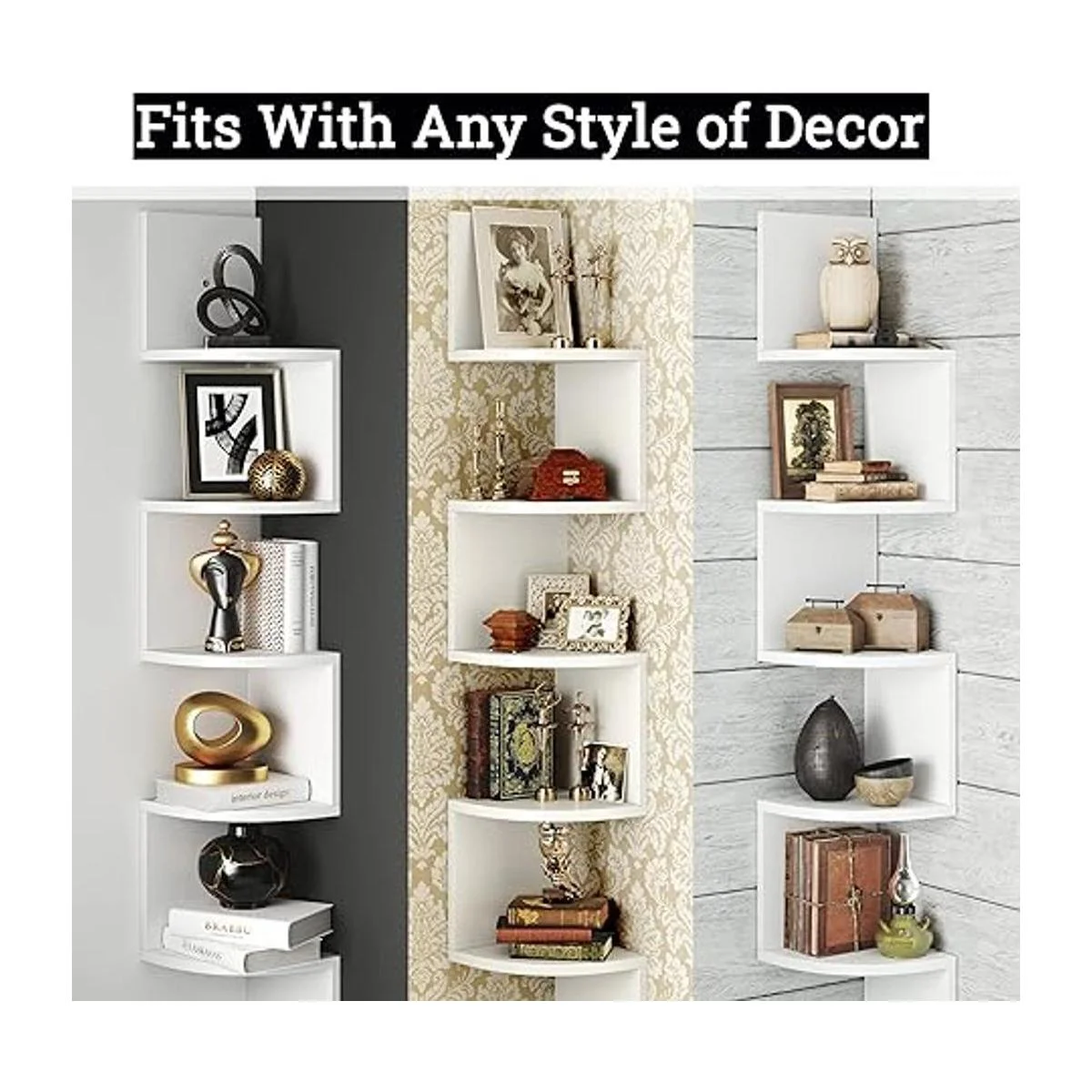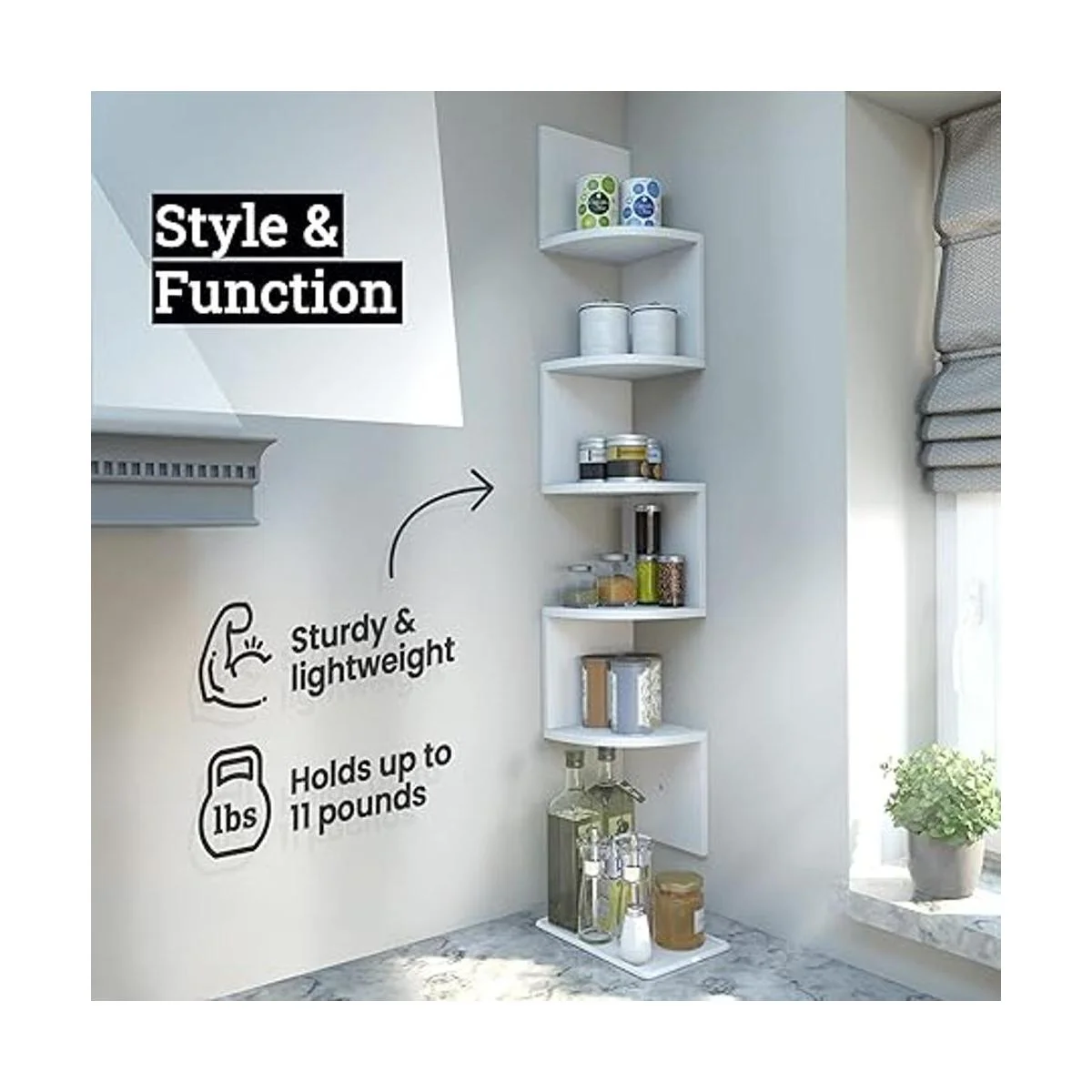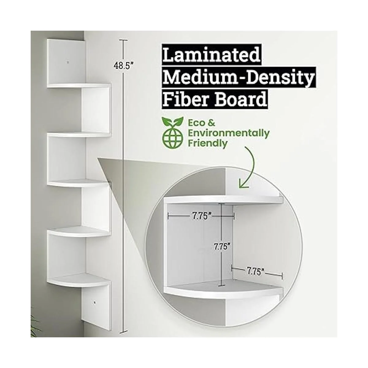 Estantes esquineros de montaje en pared de 5 niveles hechos de laminado MDF duradero.