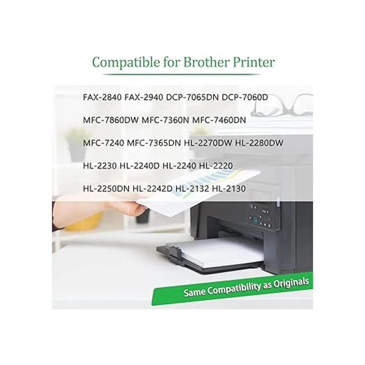 Compatible con impresora Brother: Serie FAX Impresora: FAX2840 FAX2940; Impresora de la serie DCP: DCP7065DN DCP7060D; Impresora de la serie MFC: MFC7860DW MFC7360N MFC7460DN MFC7240 MFC7365DN. Impresora de la serie HL de : HL2270DW HL2280DW HL2230 HL2240D HL2240 HL2220 HL2250DN HL2242D HL2132 HL2130