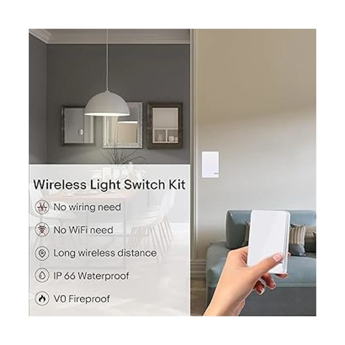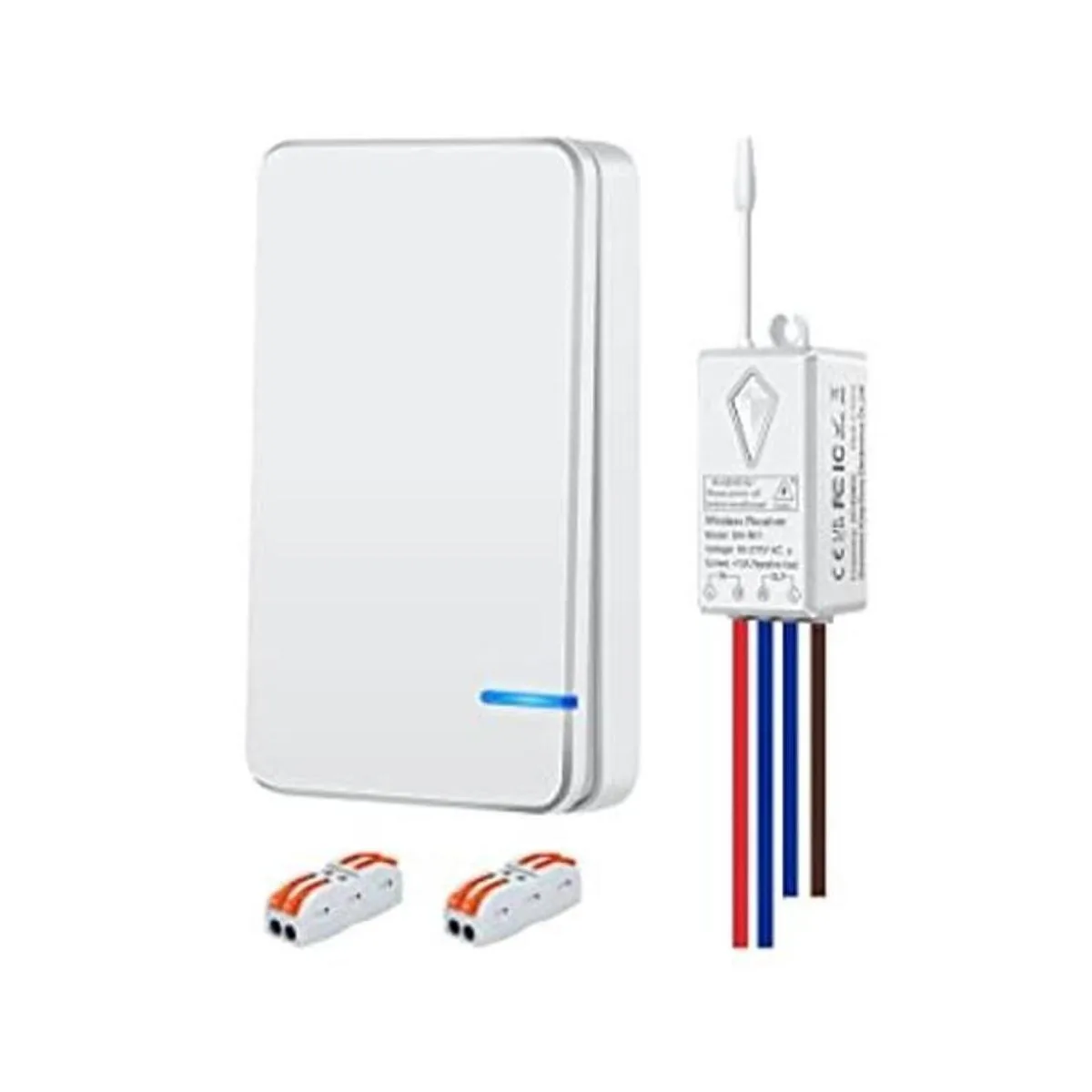 GREENCYCLE Kit de interruptor de luces inalámbricas, mini interruptor con receptor, sin cableado, no necesita WiFi, para exteriores, 1900 pies en interiores, 229 pies, accesorio de iluminación remoto para luz LED, luces de techo y lámparas, impermeable