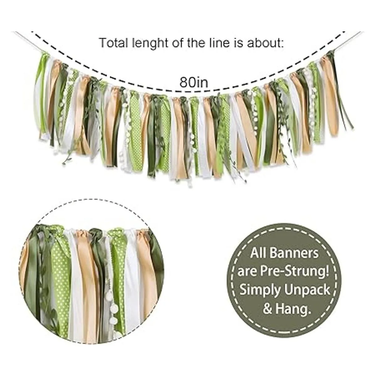 Una adición perfecta a tu evento importante: la guirnalda de tela de cinta es versátil esencial para fiestas. Decora y complementa un cumpleaños, baby shower o cualquier celebración con esta guirnalda. Ya sea que estés planeando una fiesta de cumpleaños de Woodland o baby shower de género neutro, añadirá brillo a tu evento. Ideal para una fiesta en interiores o exteriores