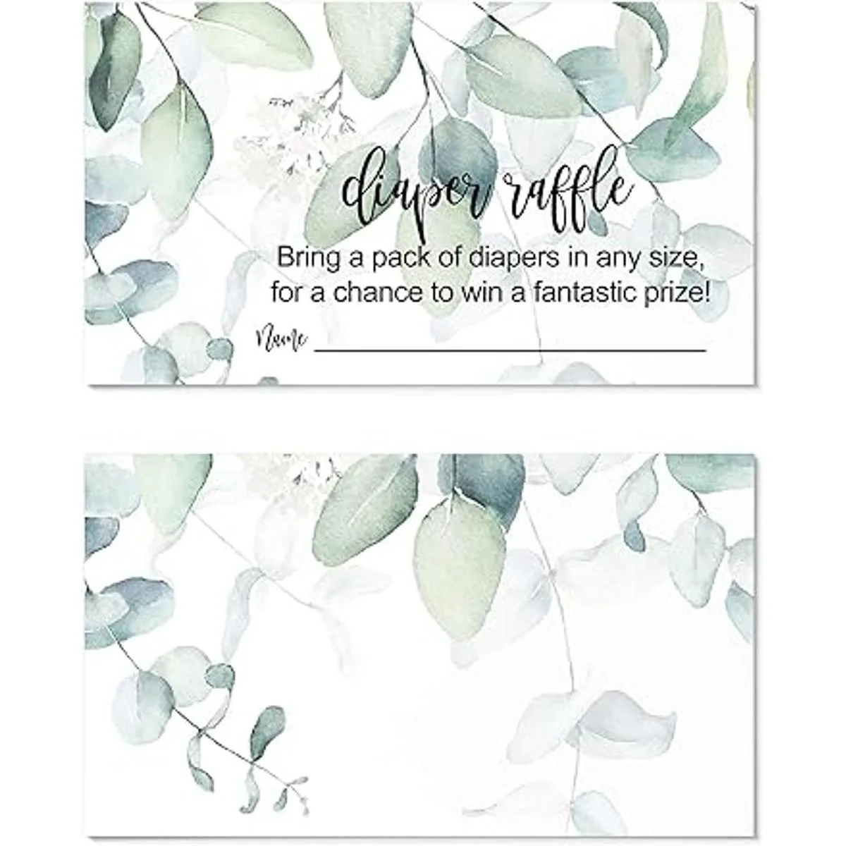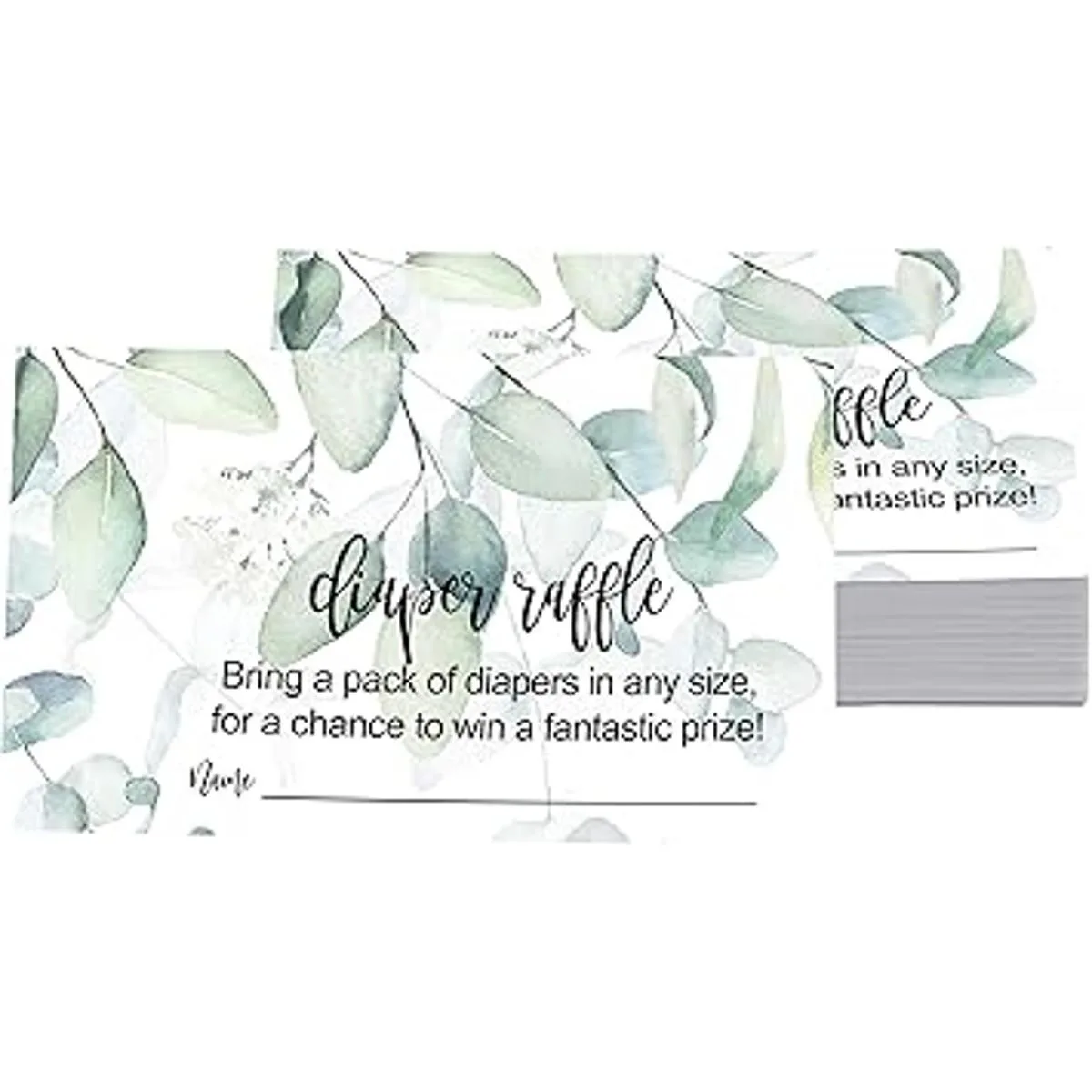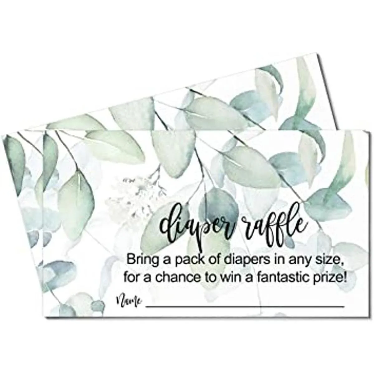 Greenery Pañal Pañal Raffle Ticket 50 Tarjetas Juegos de Ducha de Bebé Insertos de Invitación Dibujos Actividad de Espolvorear Tropical Elegante Diseño de Flor de Salvia