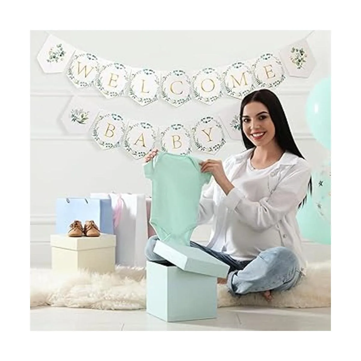 Tamaño adecuado: el tamaño de la pancarta de bienvenida para bebé es de 5.3 x 6.7 pulgadas de ancho y altura, por lo que la longitud total de las dos pancartas es lo suficientemente larga para que puedas colgarlas en los lugares que desees