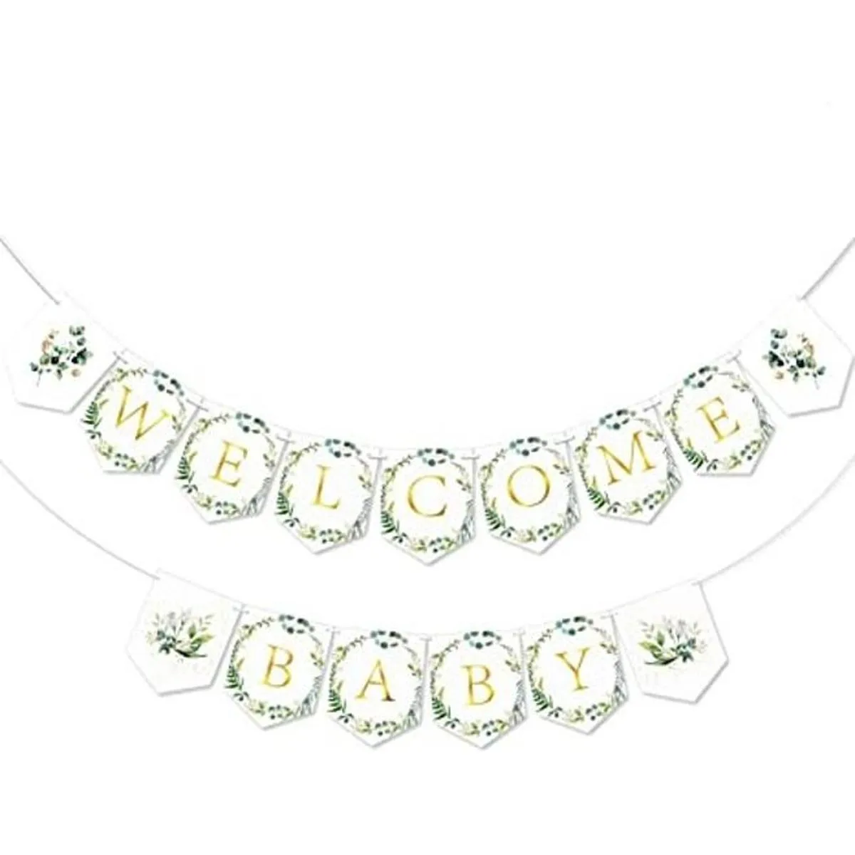 Greenery Pancarta de bienvenida para baby shower, hojas de eucalipto, decoración de baby shower para niño, decoración de baby shower, banderín de papel para colgar, letrero de bienvenida para niña, género neutro