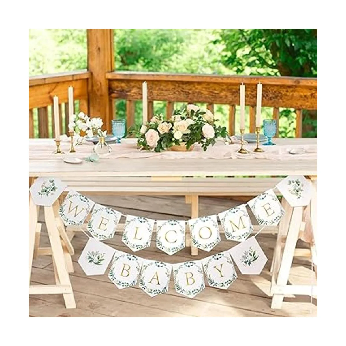 Diseño cuidadoso: las decoraciones rústicas para baby shower están exquisitamente diseñadas con ramas y flores vegetales, y los patrones florales en la pancarta añaden mucha sensación rústica y natural a todo tu estilo de decoración