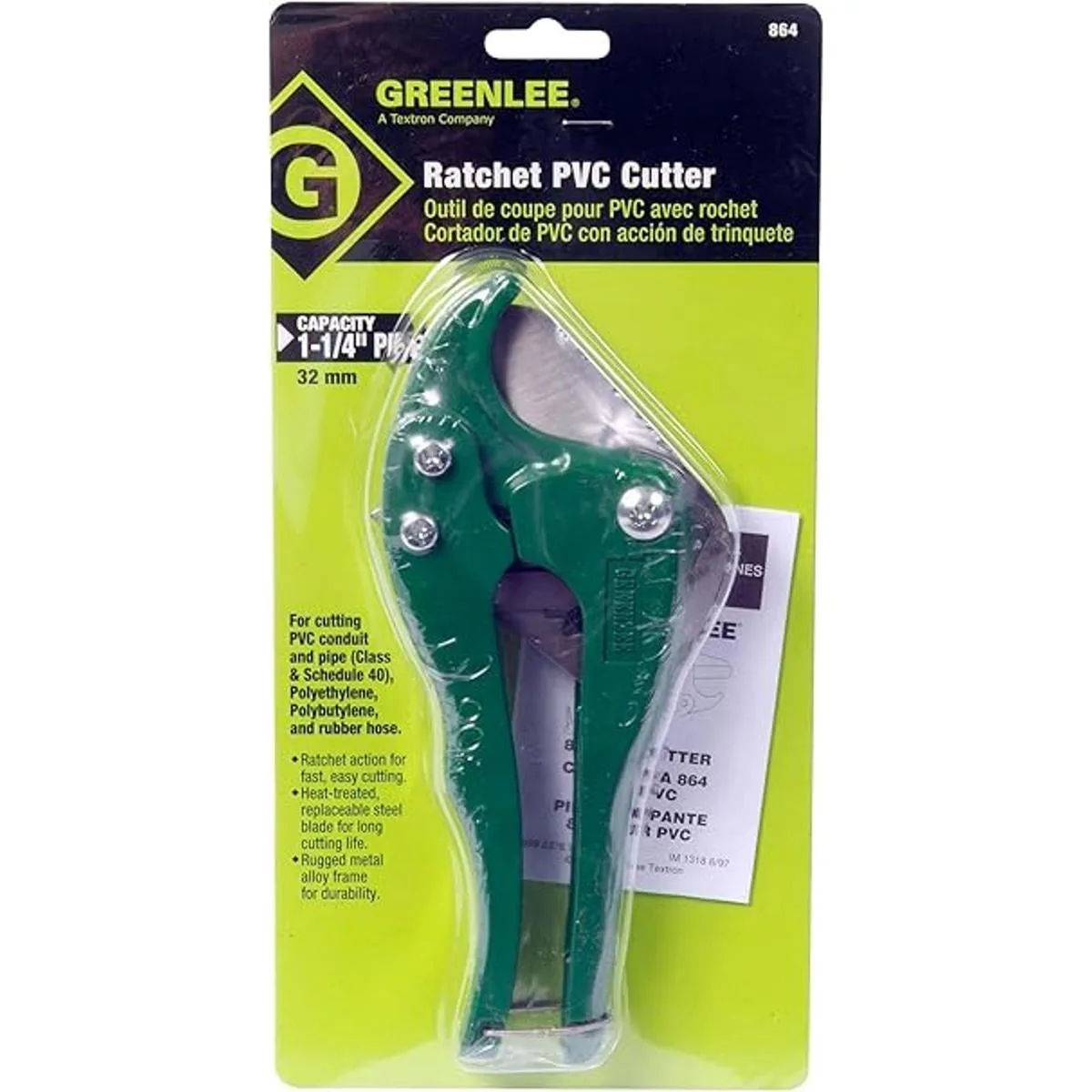 Greenlee 864 Cortador de tubos, tapa de corte de hasta 11/4 pulgadas. Verde, pequeño