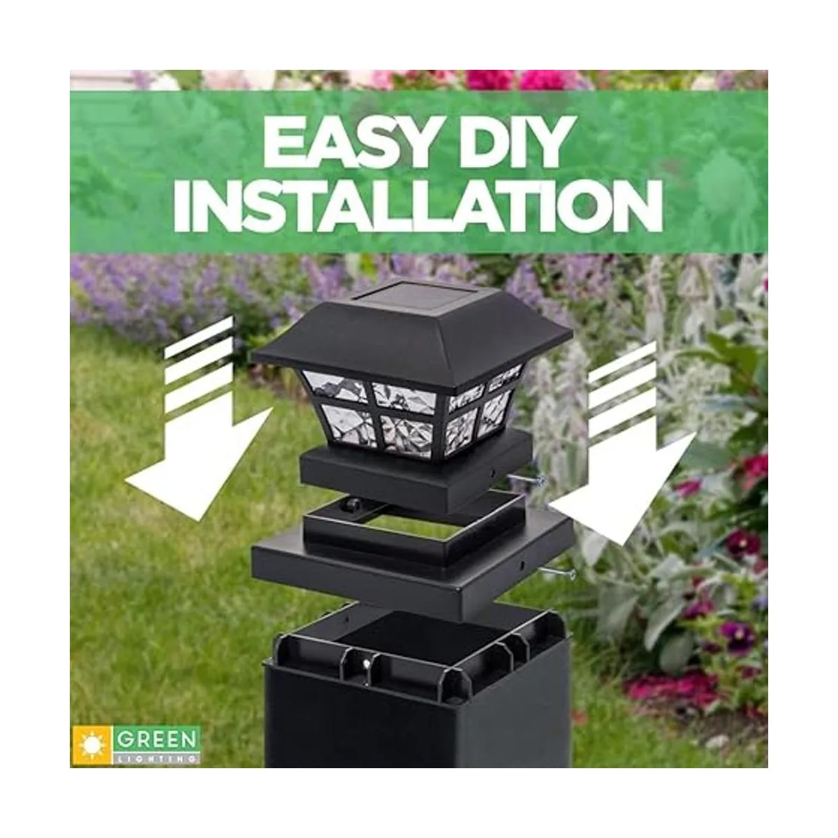 Para múltiples tamaños de poste: cada tapa mide 5.1 x 5.1 x 3.9 pulgadas; medida interior de 3.6 x 3.6 pulgadas. Las luces solares de poste se adaptan a postes de madera nominal de 4 x 4, vinilo o PVC de 4 x 4, y postes de vinilo o PVC de 5 x 5 con adaptadores incluidos.