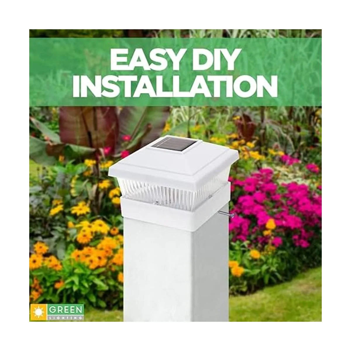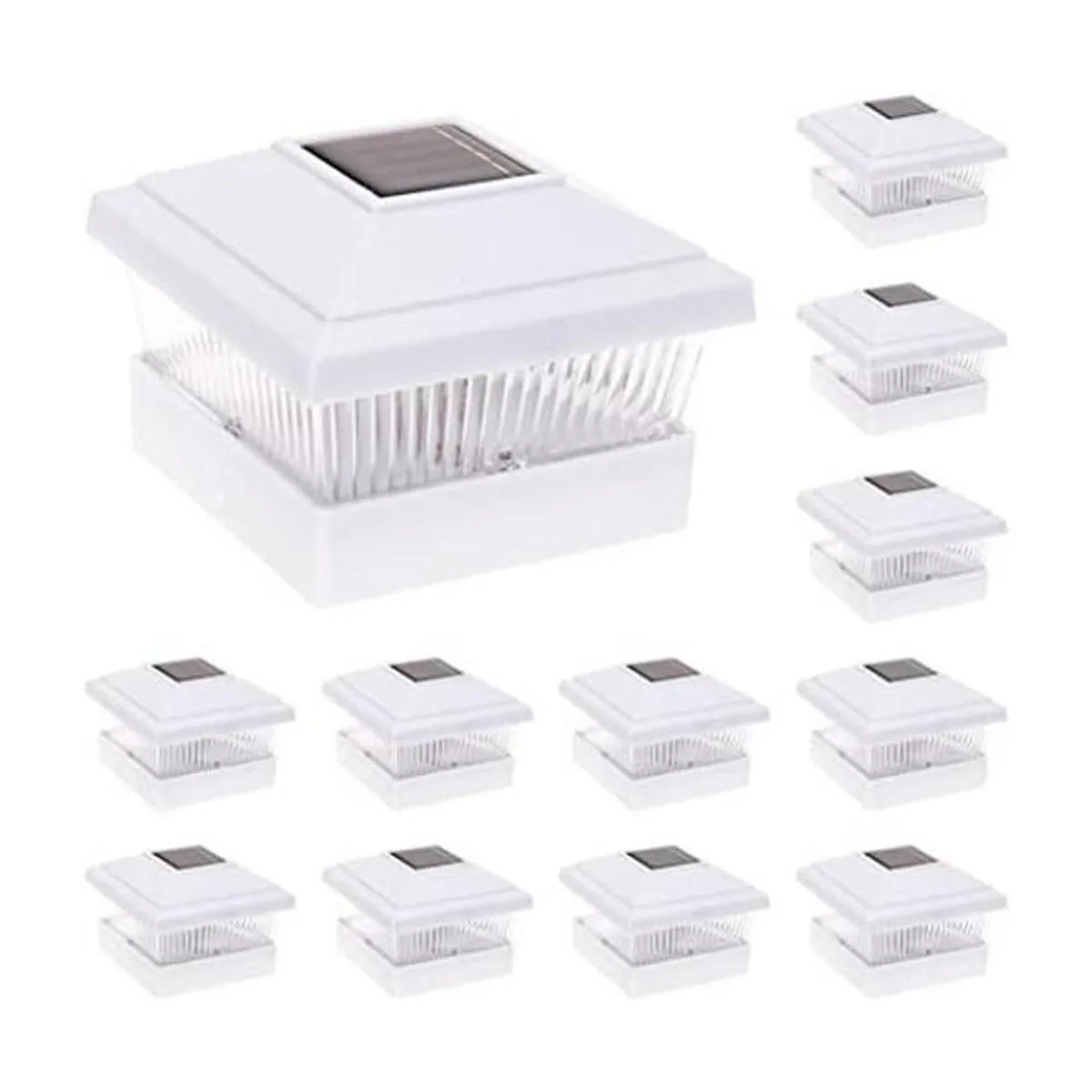 GreenLighting Luces solares clásicas 2 para vallas, luces solares para postes de lámpara de cubierta, luces solares de 5 x 5 pulgadas, luces solares de poste de valla de vinilo blanco roto, paquete de 12