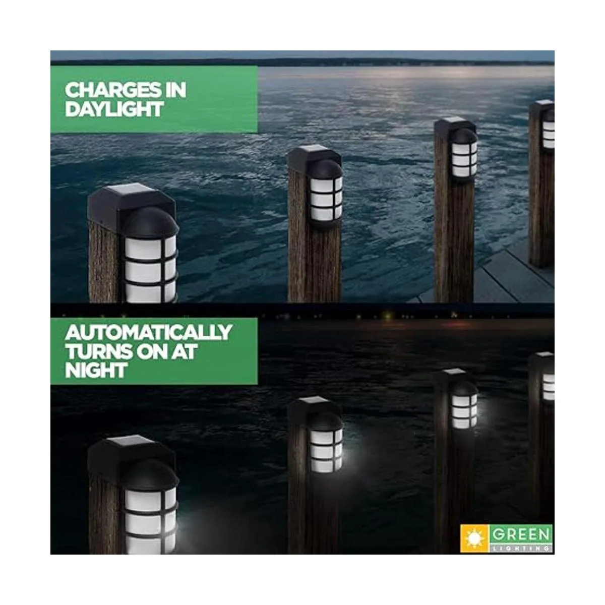 GreenLighting Paquete de 2 luces solares para poste de Marina Luz de muelle de montaje lateral de metal para postes de madera de 4 x 4 pulgadas negro