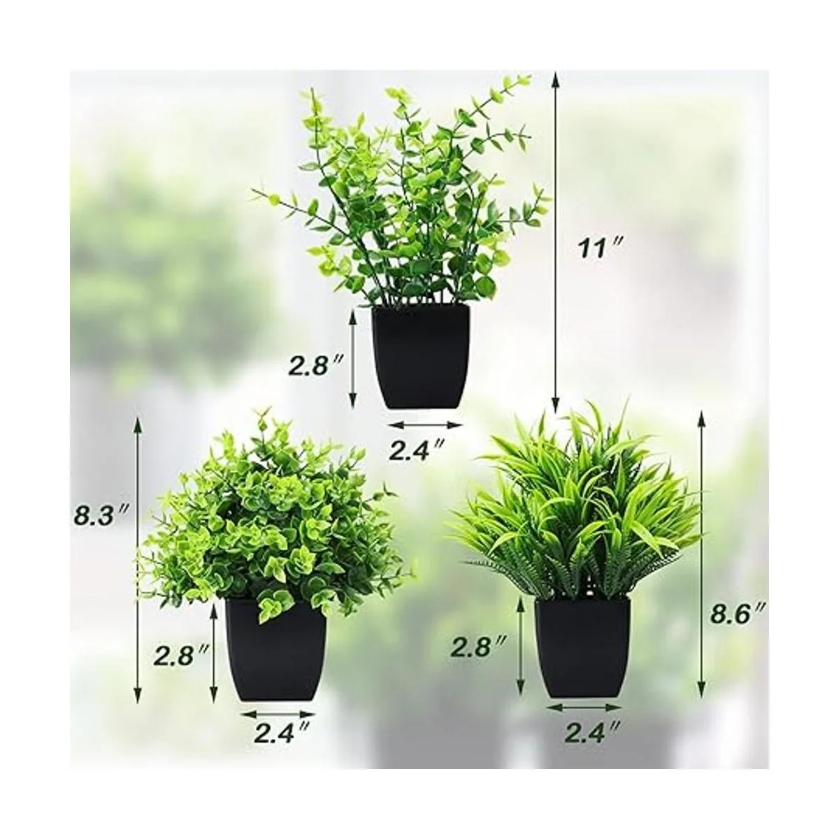 Amplias aplicaciones: el juego de plantas falsas de 3 macetas se puede utilizar para decoración de interiores y exteriores, escritorio de oficina en casa, alféizar de ventana, baño, cocina, tocador, estantería, etc. Añade vegetación a tu vida y crea un ambiente fresco y natural.