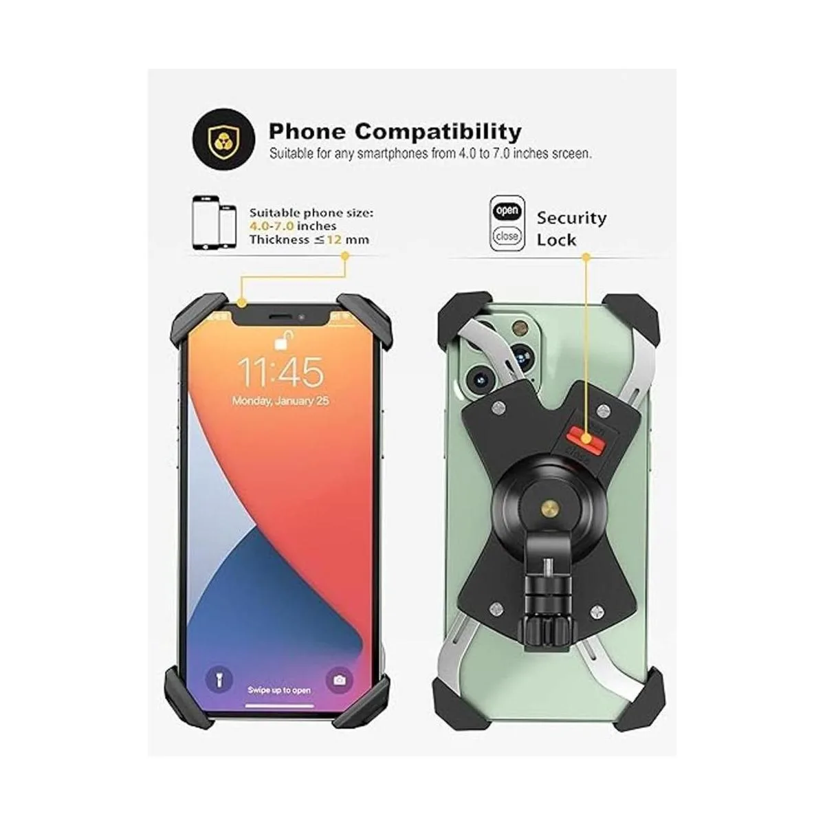 Grefay Soporte de teléfono para bicicleta, soporte de teléfono de motocicleta, soporte de teléfono para teléfono inteligente de 4.0 a 7.0 pulgadas con rotación de 360