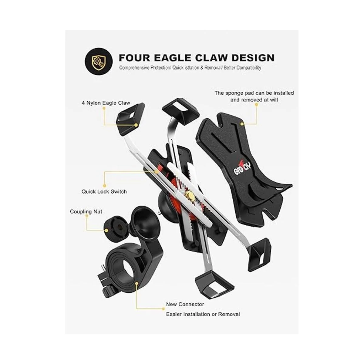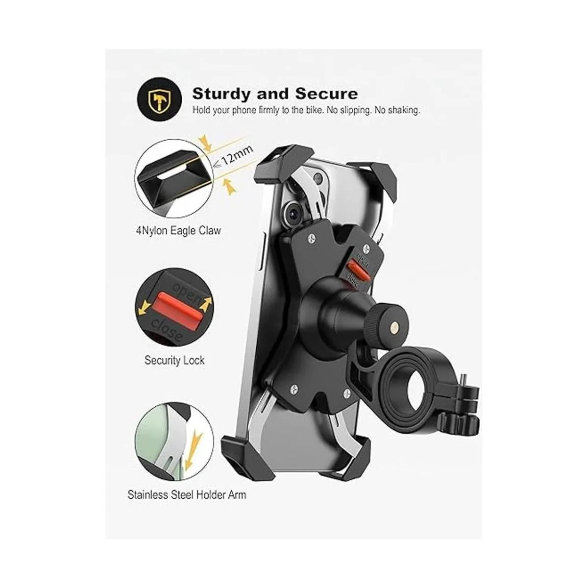 Resistente y seguro: el soporte para teléfono de motocicleta tiene 4 brazos de abrazadera de acero inoxidable, que pueden fijar firmemente cada esquina del teléfono móvil en el soporte de la bicicleta. Es seguro y estable para tu teléfono celular incluso en carreteras difíciles.