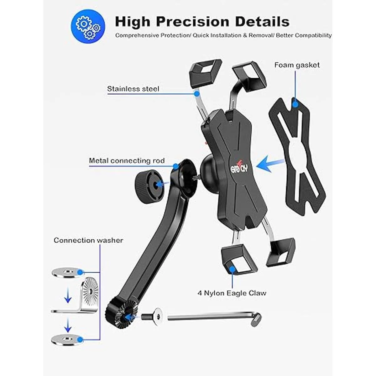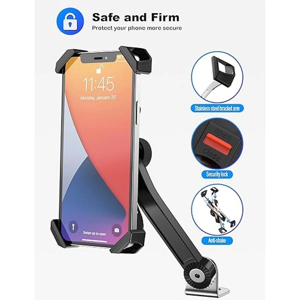 Diseño patentado: el soporte para teléfono de motocicleta Grefay está hecho de acero inoxidable de alta resistencia. El soporte para motocicleta está equipado con 4 esquinas de soporte, un brazo retráctil automático de metal y un interruptor de bloqueo manual para garantizar que tu smartphone no se deslice.