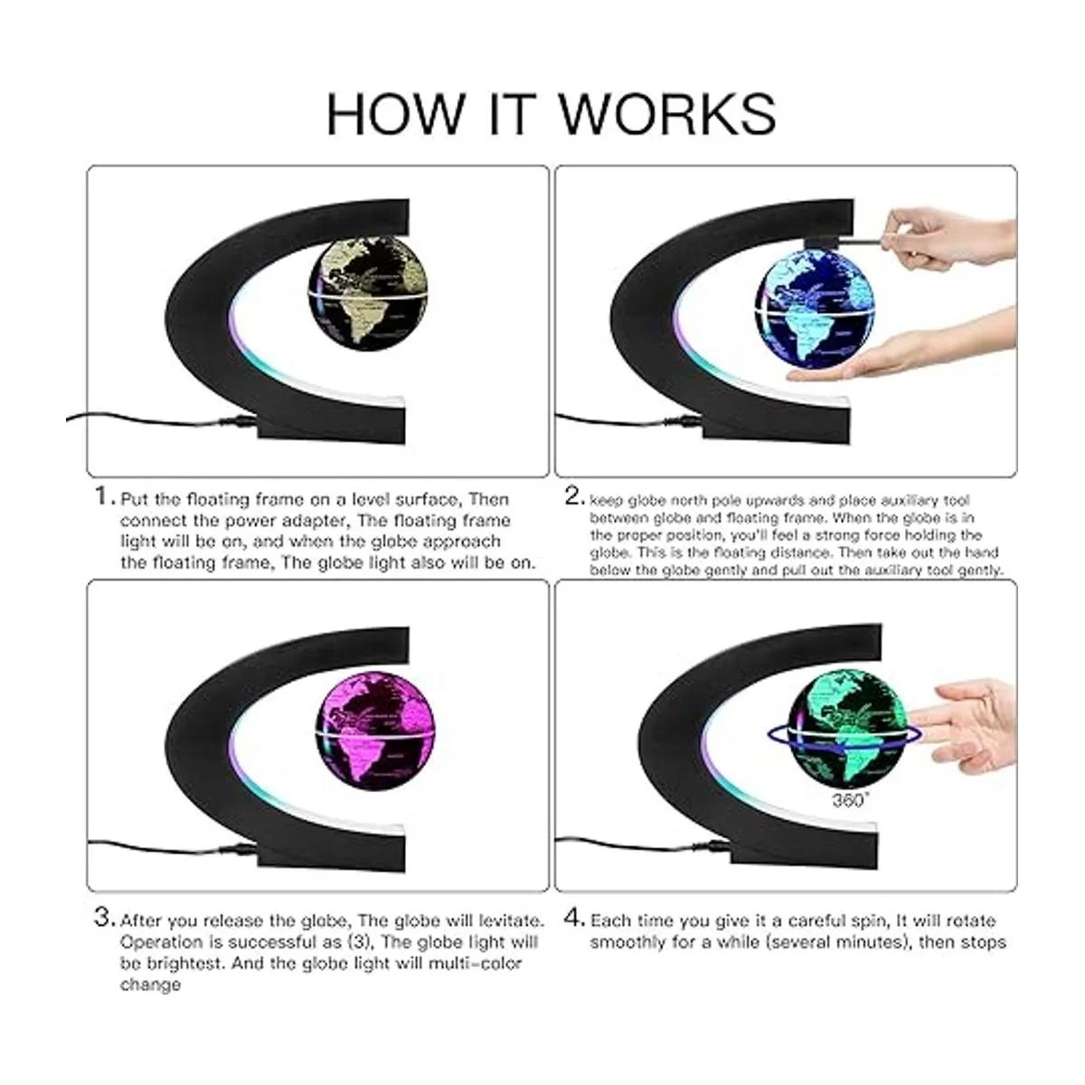 Dispositivo de alta tecnología: el globo de color negro y plateado se puede levitar y flotar constantemente en el aire medio, ya que funciona con un sistema magnético controlado electrónicamente. Cada vez que le des un giro cuidadoso, girará suavemente durante un tiempo varios minutos, luego se detiene