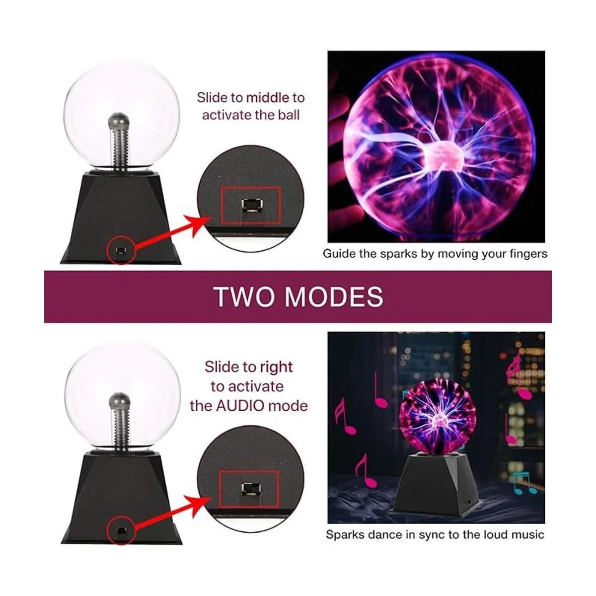 Sensible al tacto y al sonido: el globo de plasma tiene dos modos interactivos diferentes, no solo sigue tu toque con luces multicolores, sino que también responde a la música fuerte 80 dB o superior. chispas bailar en sincronización con la música fuerte