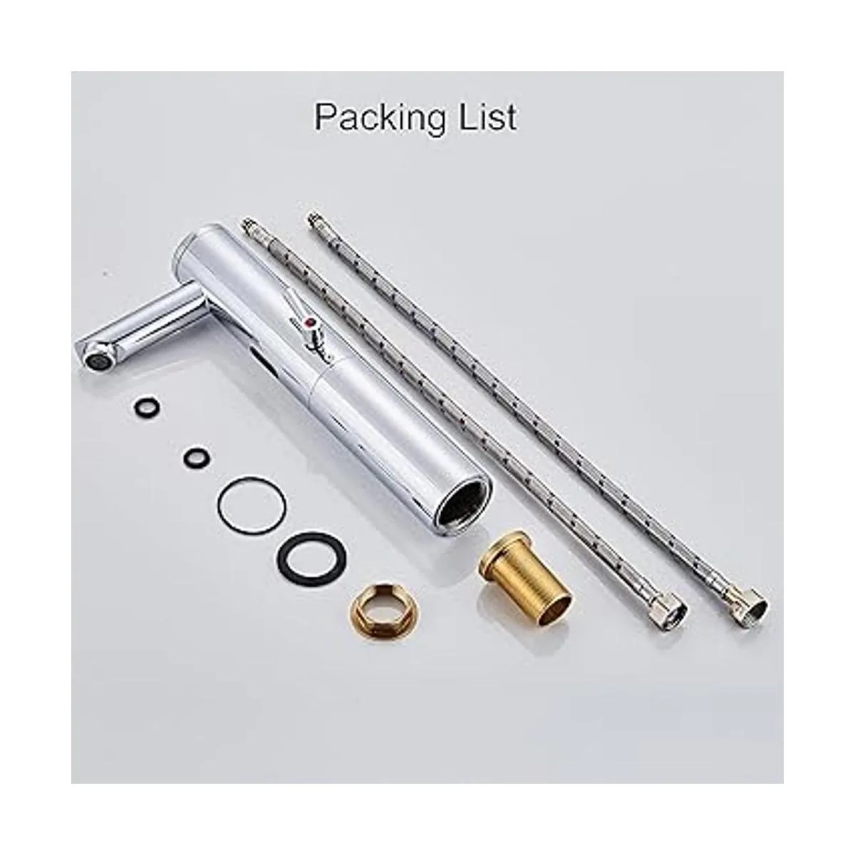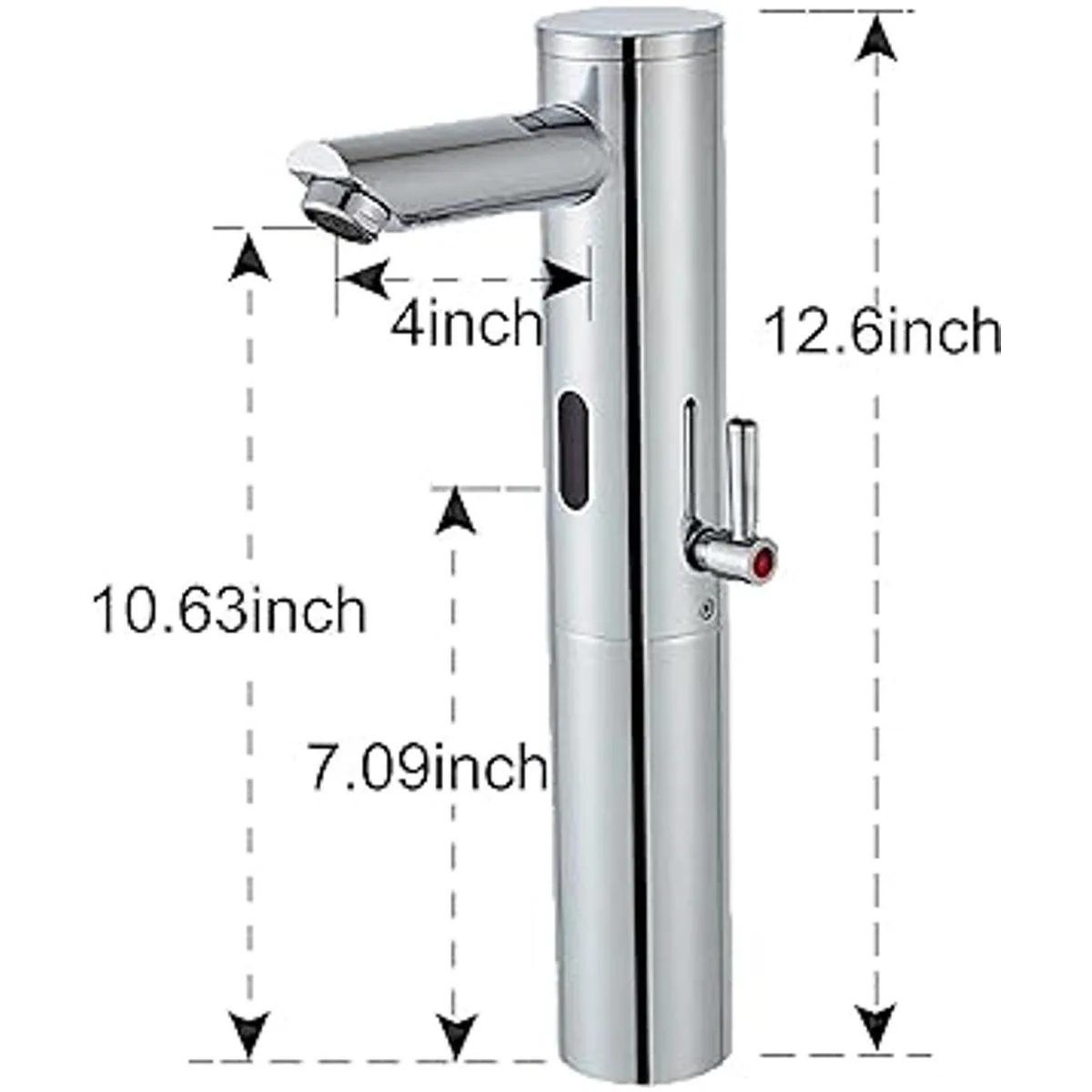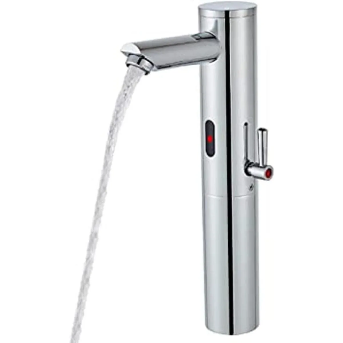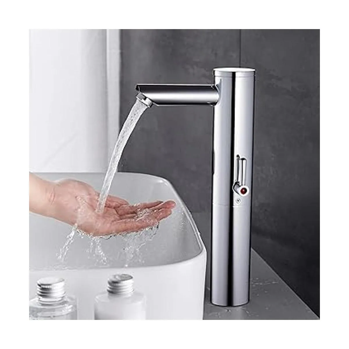 Grifo de lavabo de cuerpo alto electrónico con sensor automático sin contacto, grifo de fregadero de baño activado por movimiento, acabado cromado alto