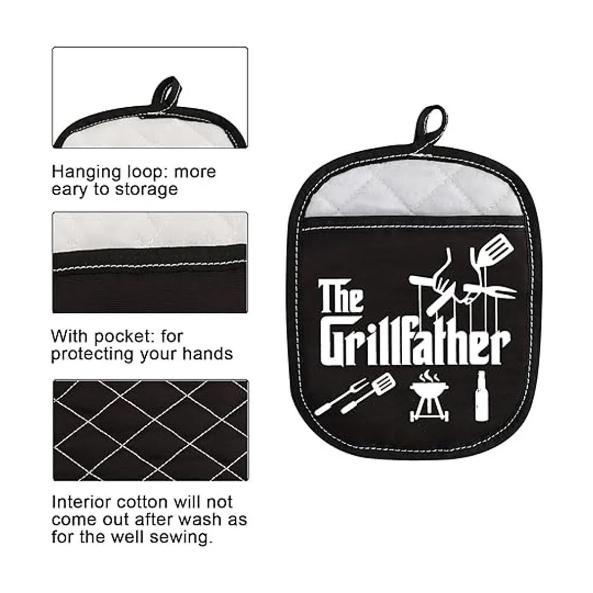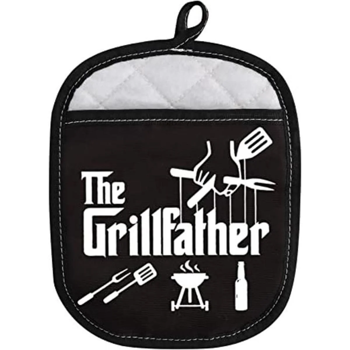 Grill Master BBQ Lover Gift The Grillfather Funny Potholder para papá abuelo El Grillfather
