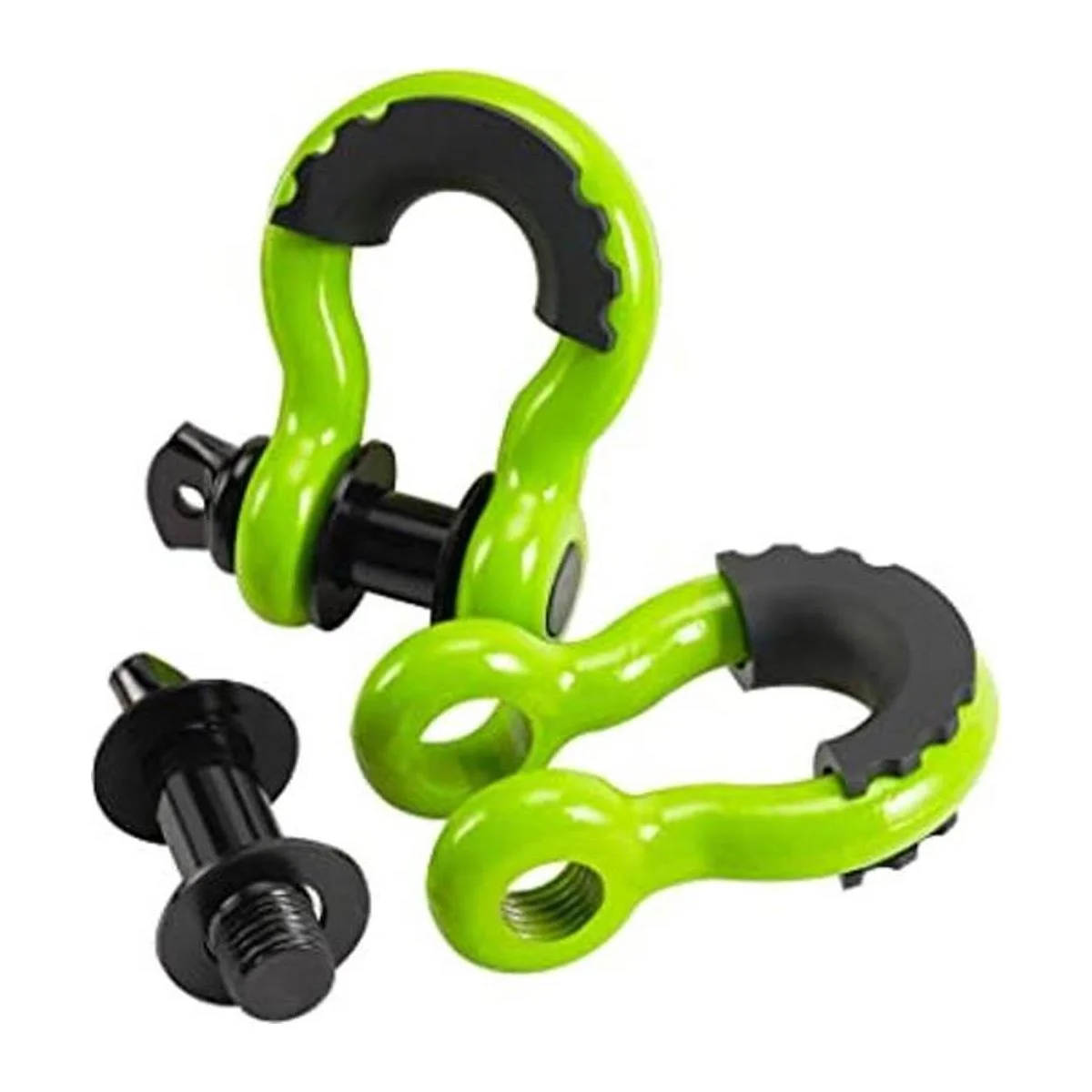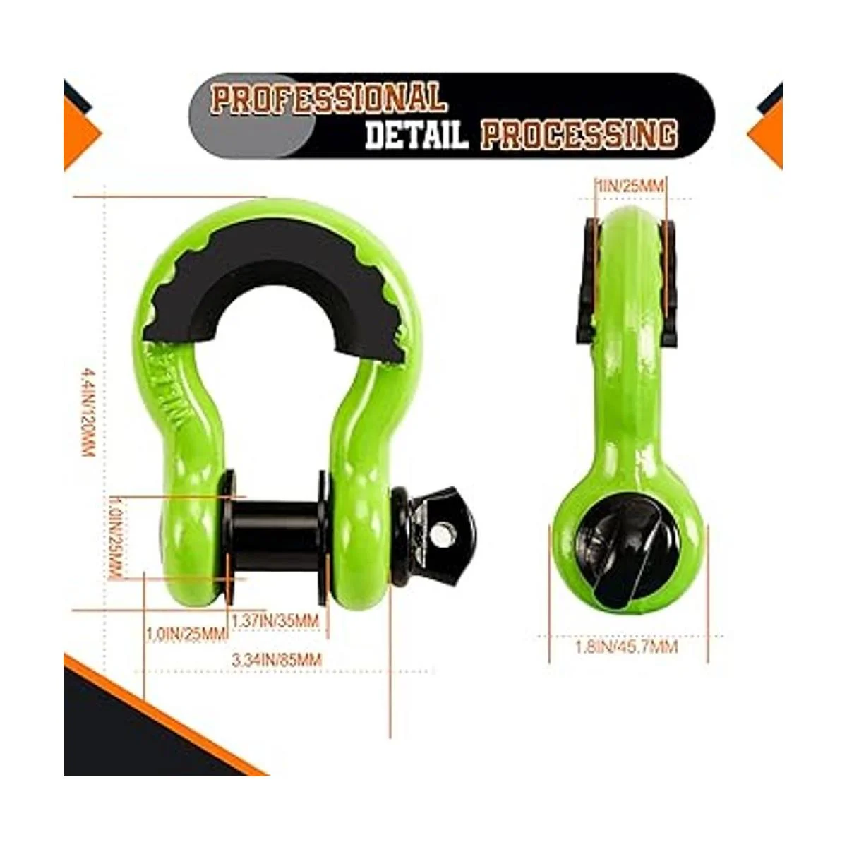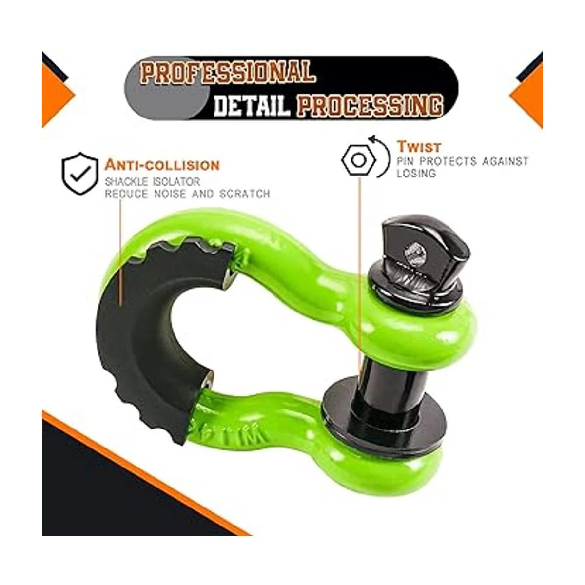 Grilletes Orcish de 34 pulgadas en D con arandela aisladora negra, kit de grillete naranja resistente de 4.75 toneladas Off Road para recuperación de vehículos, remolque, extracción de troncos verde