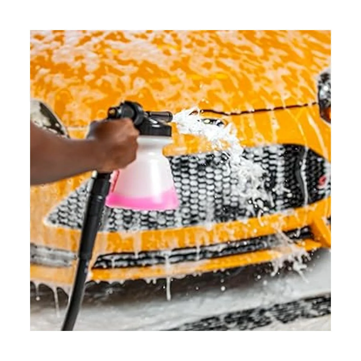Coloca fácilmente una espuma Sea of Cleaning y enjuaga tu vehículo para un lavado seguro y completo en mucho menos tiempo y con mucho menos esfuerzo.
