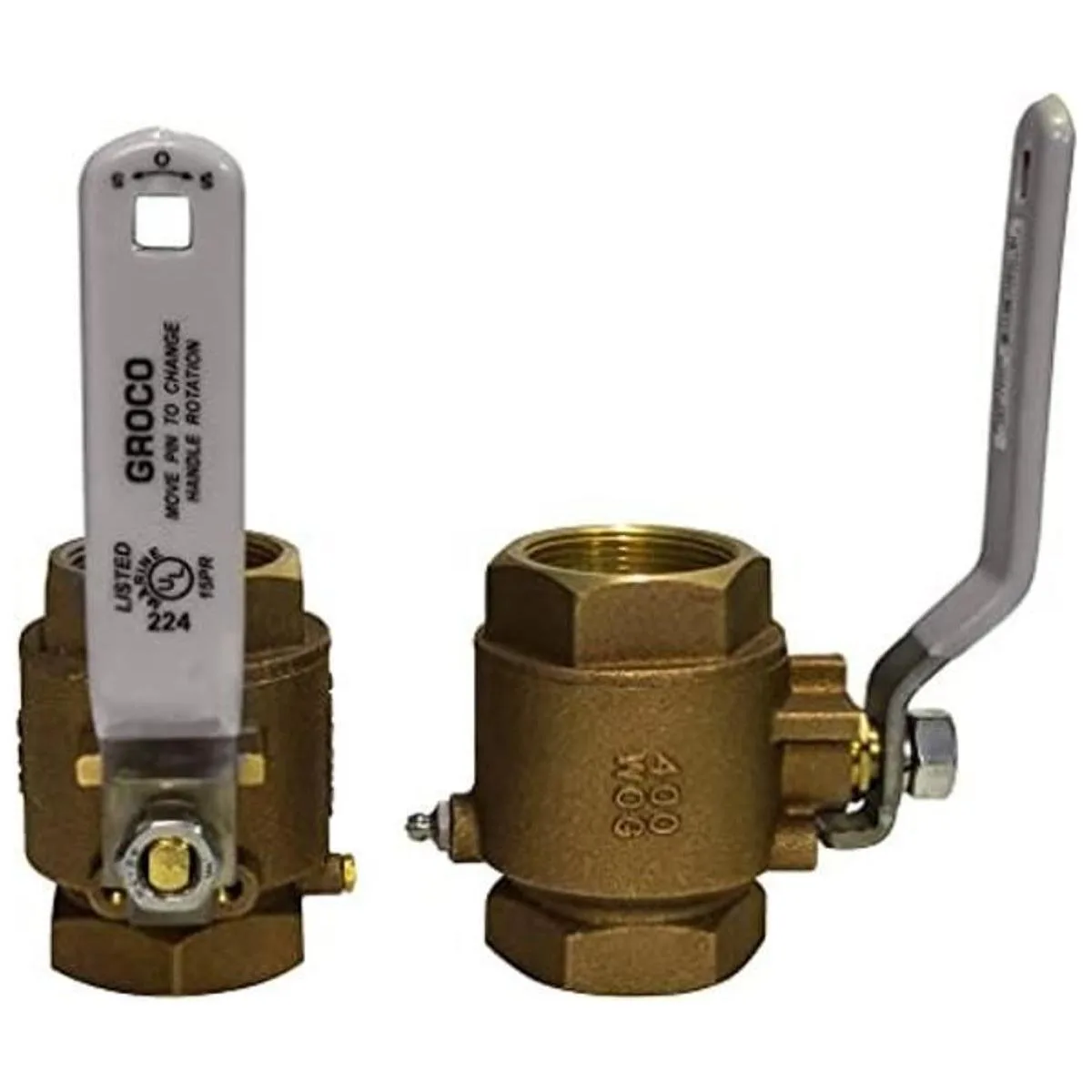 Groco Válvula de bola en línea de flujo completo, 114 Npt, bronce