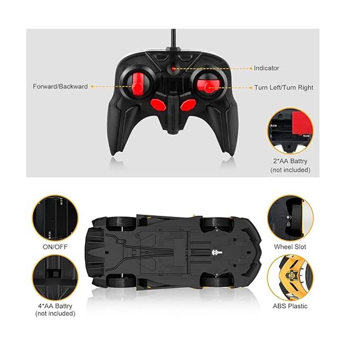Coche RC totalmente funcional: el elegante perfil aerodinámico y el controlador de 27 MHz con funciones como giros hacia adelante, atrás, izquierdo y derecho que son fáciles de controlar y el coche responde bien. Simula un motor realmente potente como se puede esperar de un coche famoso. El simple control remoto de dos joystick y una velocidad máxima de 5 millas por hora son divertidos de jugar.
