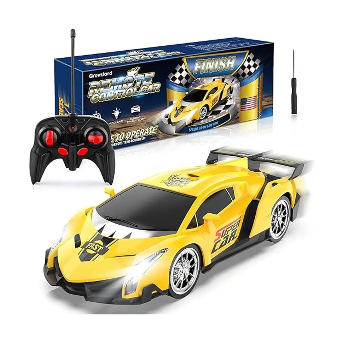 Growsland Coche de control remoto, autos a control remoto, regalos de Navidad para niños de 118 pulgadas, deportes eléctricos, carreras de pasatiempos, vehículo modelo amarillo con luces y controlador, juguetes para niños, regalos para niños de 4, 5, 6, 7, 812 años