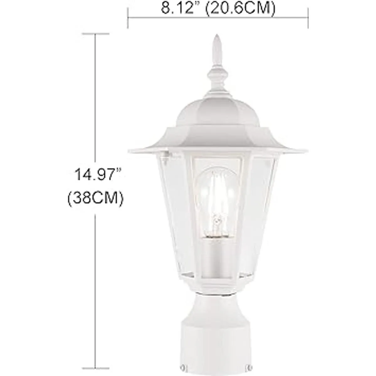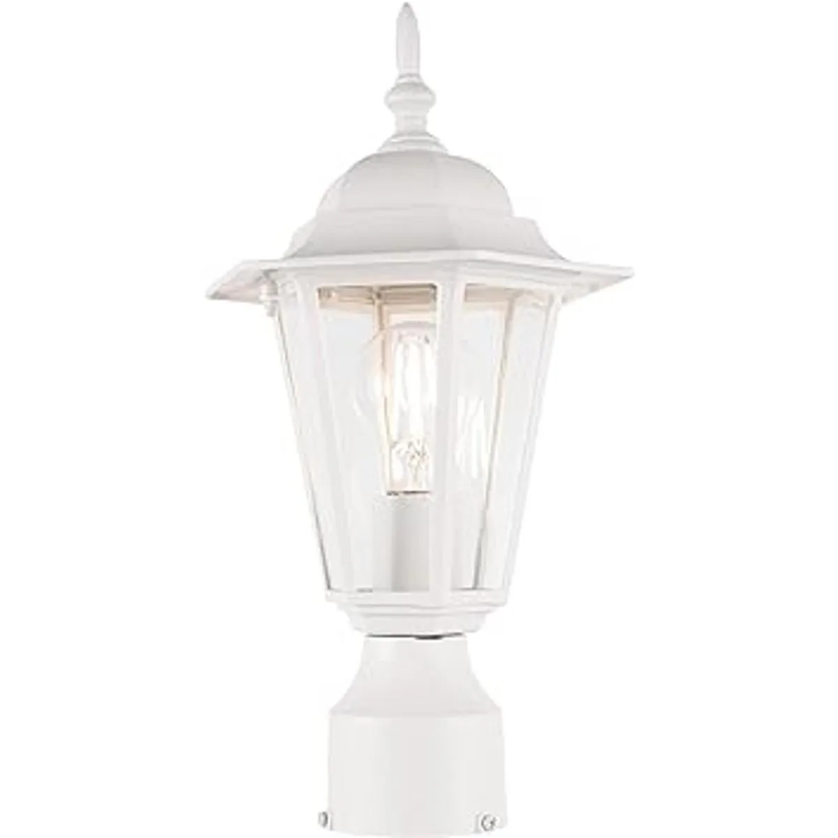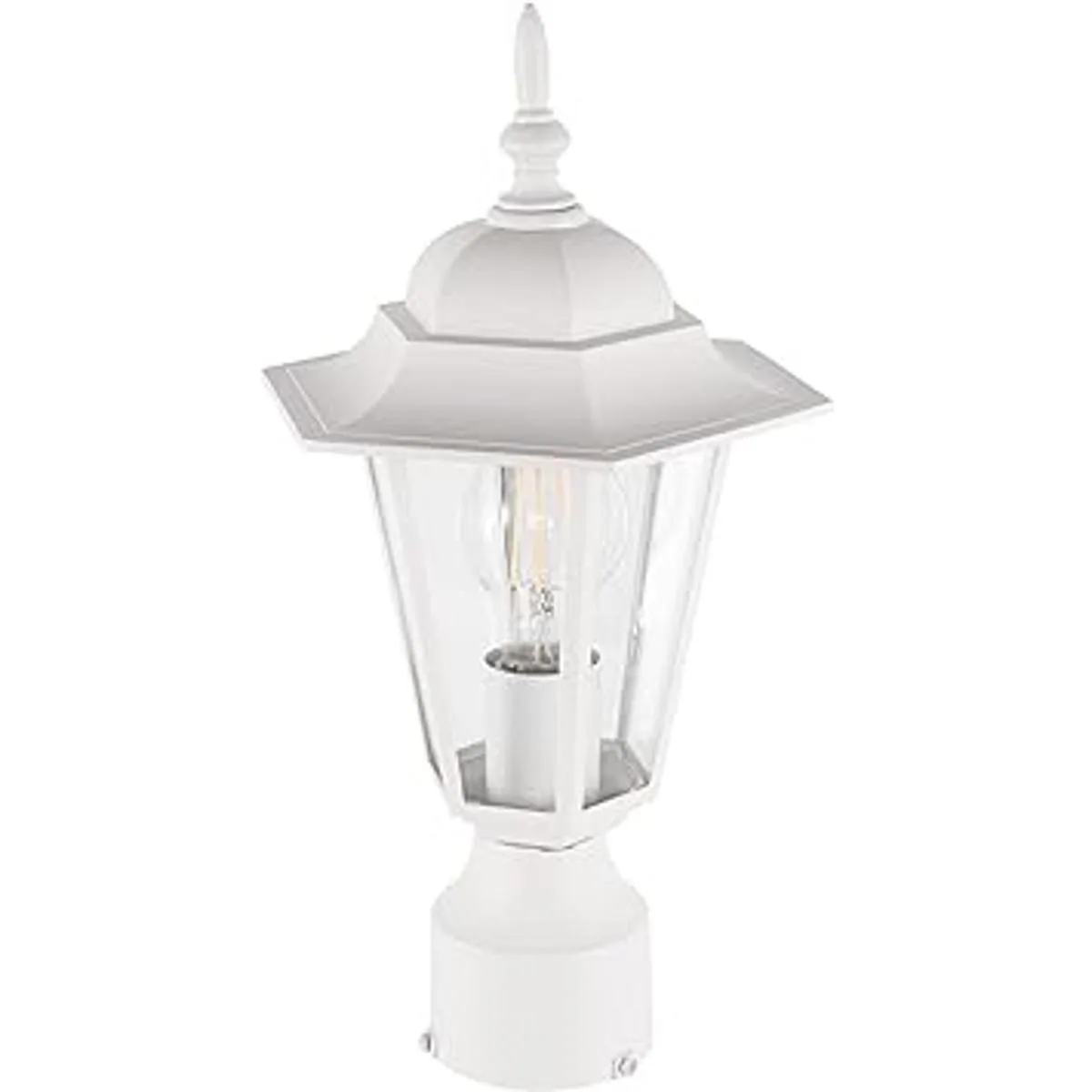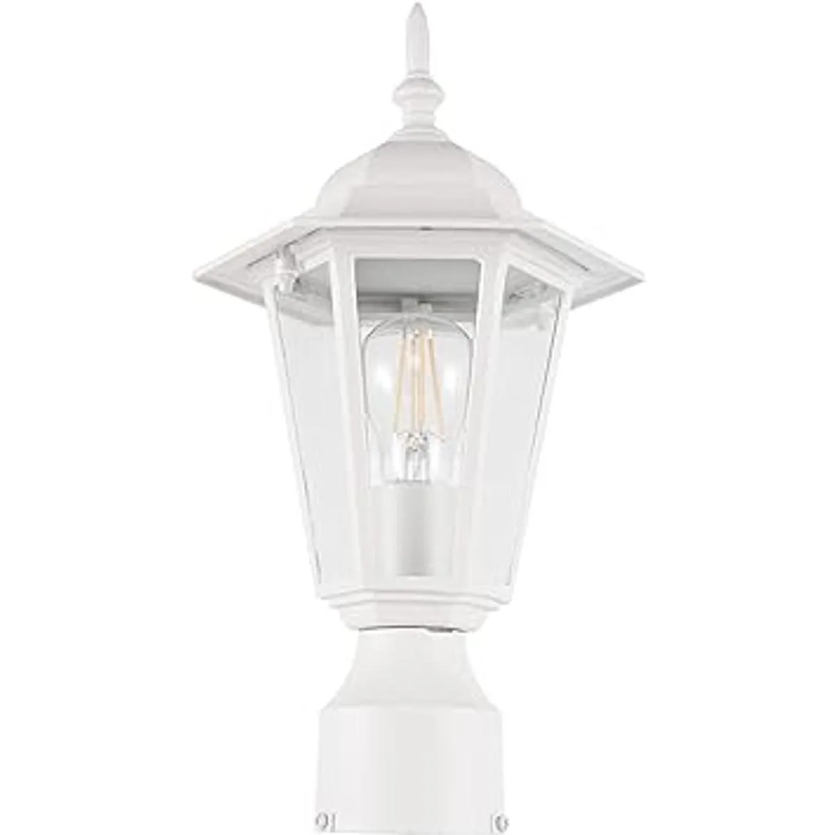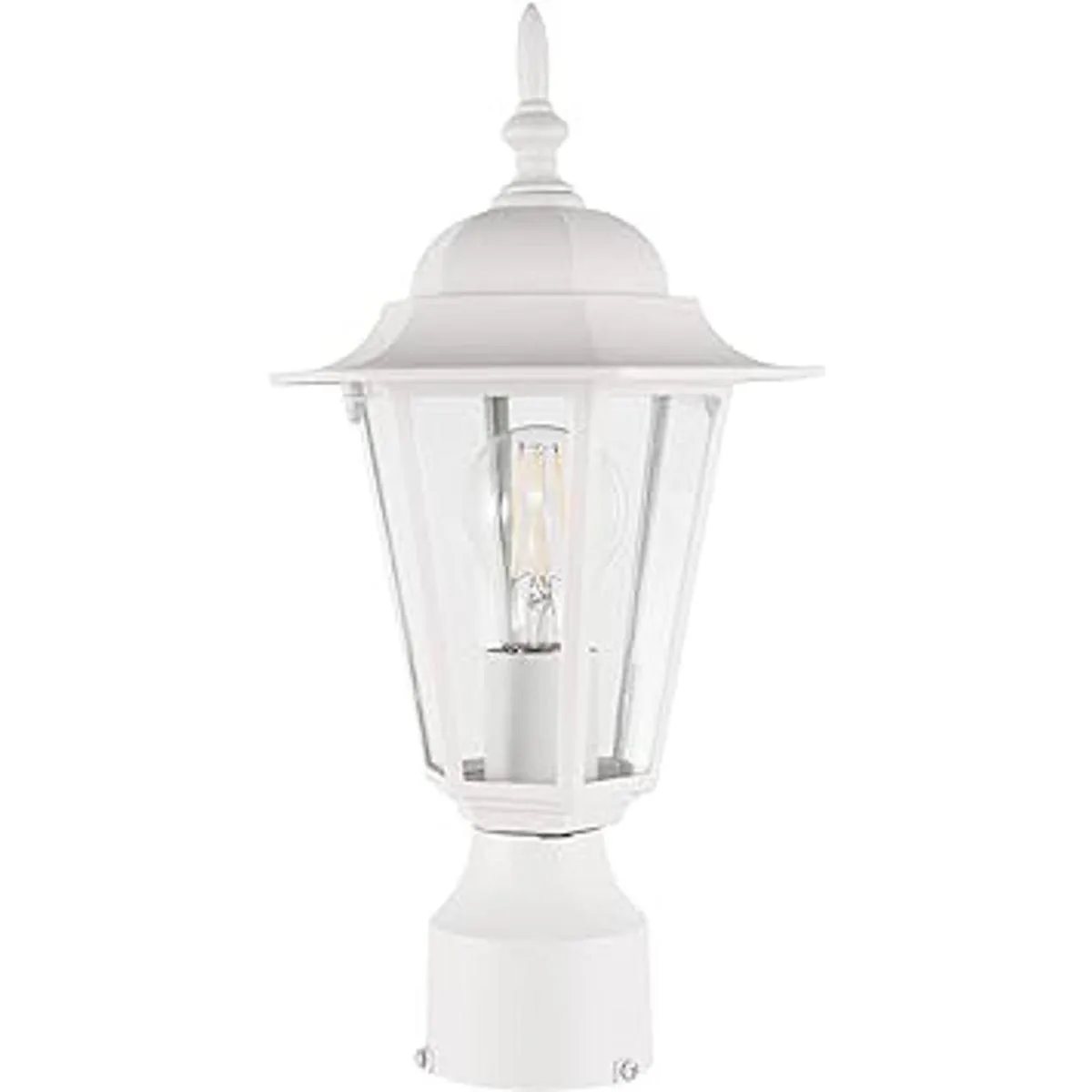 Gruenlich Accesorio de iluminación para poste exterior con una base media E26 máx. 60 W, carcasa de metal más vidrio, bombilla no incluida acabado blanco