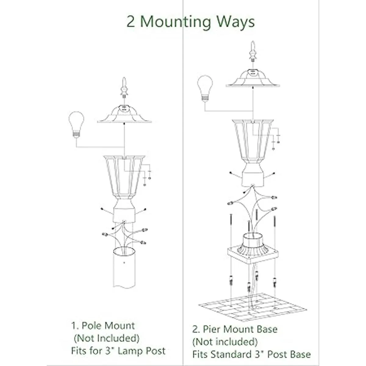 Instalación de bricolaje: la luz de poste para exteriores es fácil de instalar, los pasos de instalación detallados se enumeran en la hoja de instrucciones y las piezas de accesorios requeridas están incluidas en el paquete, solo tardará unos minutos antes de completar todo el proceso