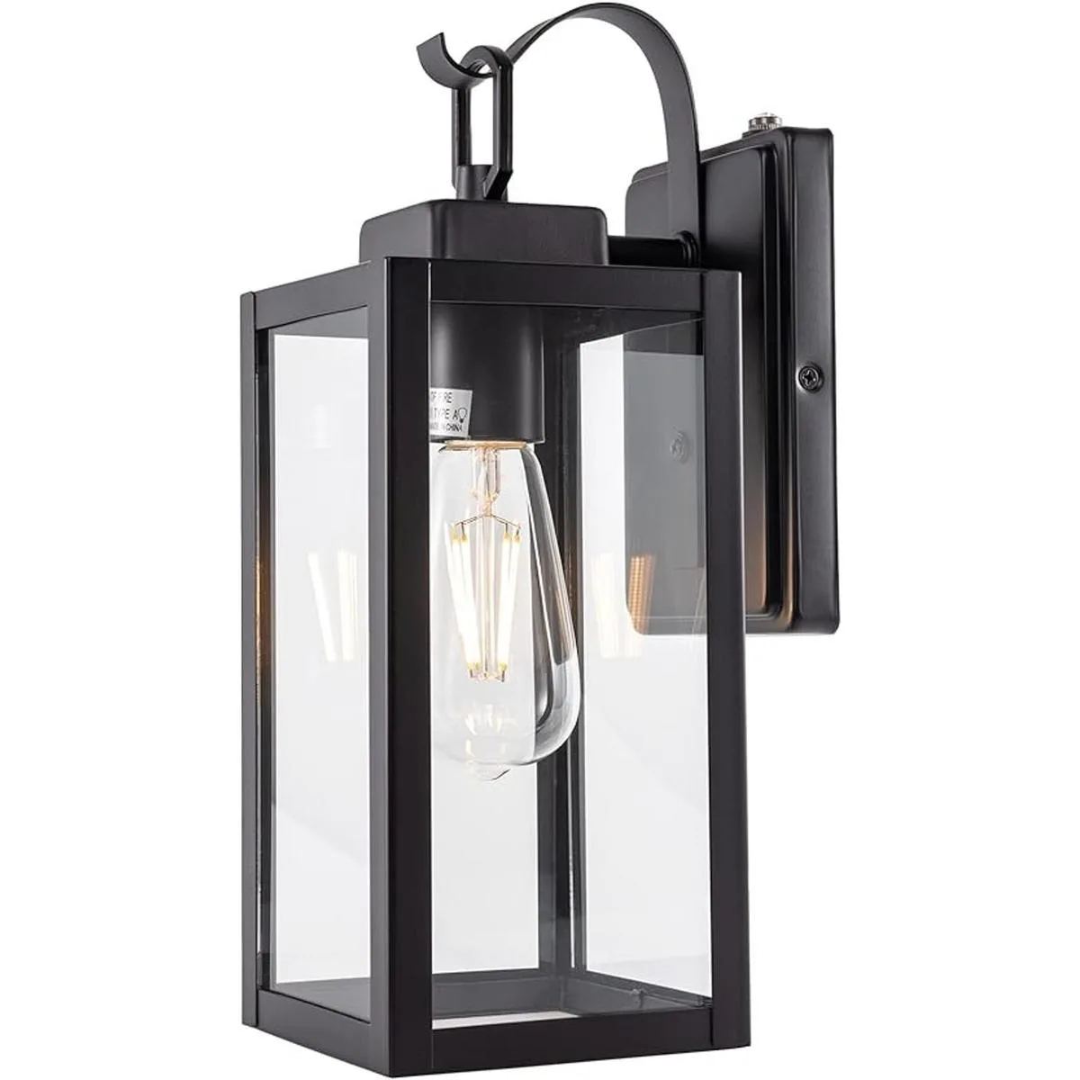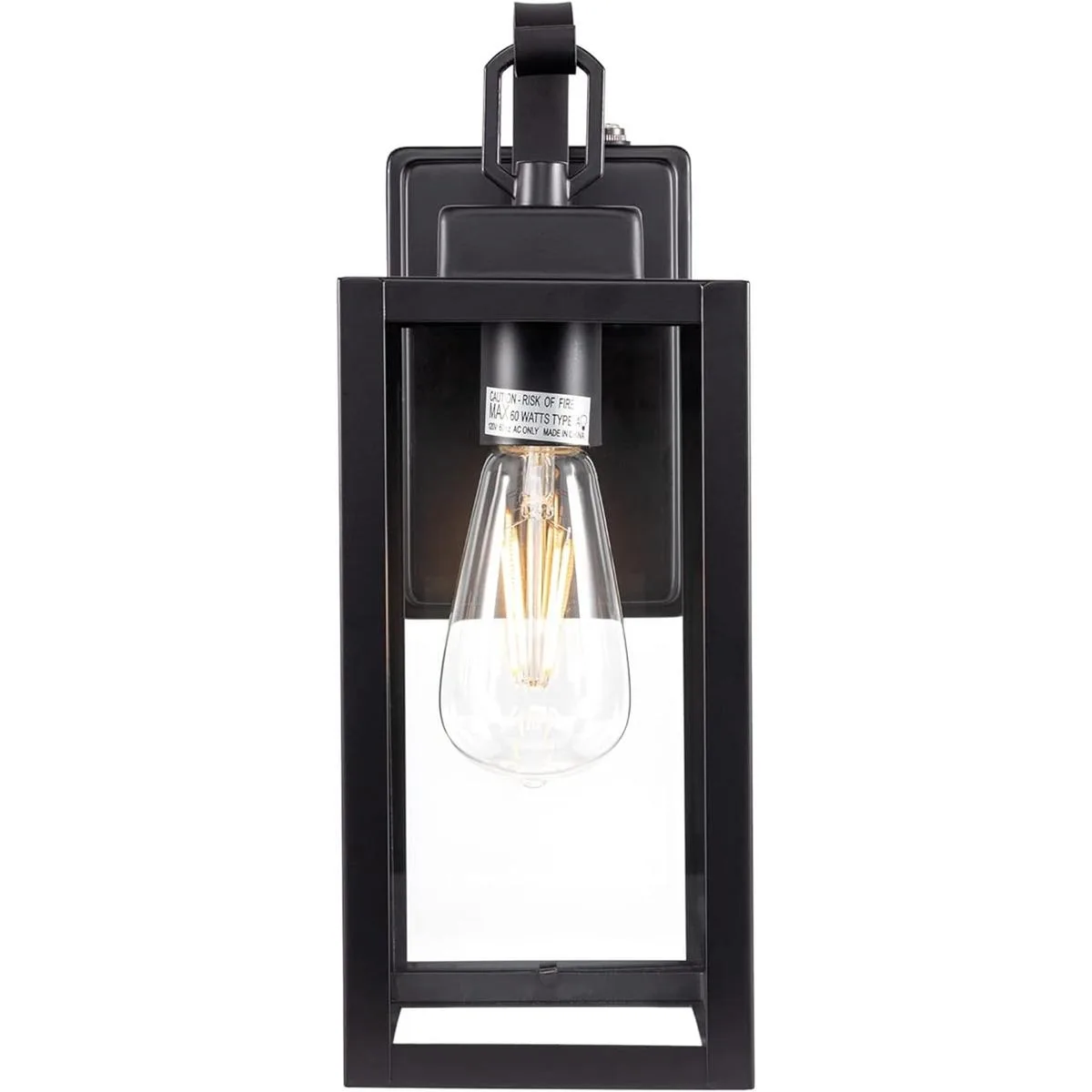 Gruenlich Linterna de pared para exteriores del atardecer al amanecer, aplique de pared, base E26 máximo 60 W, carcasa de metal más vidrio, acabado negro mate, clasificación ETL, bombilla no incluida, paquete de 1
