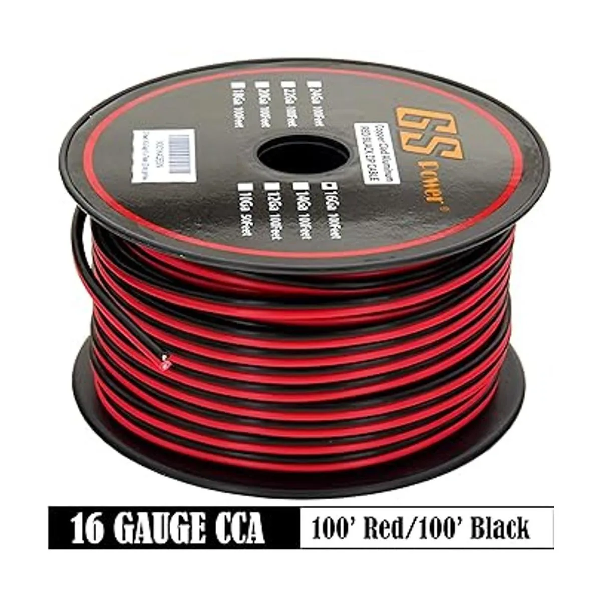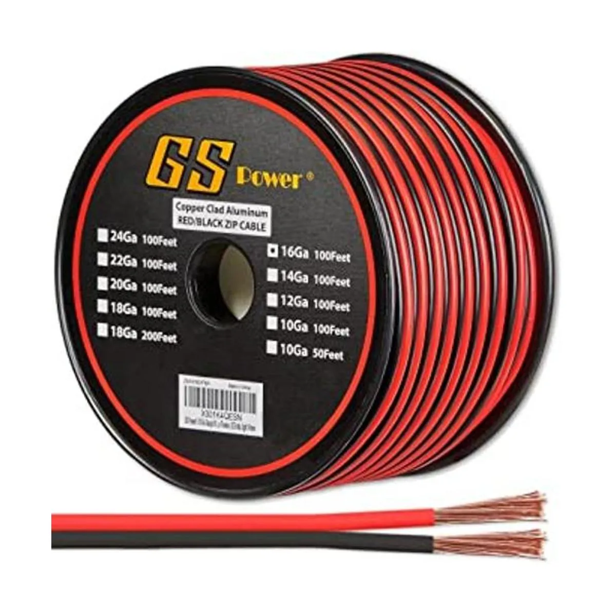 GS Power 16 Ga Gauge cobre revestido aluminio rojo negro con cremallera cable altavoz cable para audio de coche, amplificador de radio para hogar remoto estéreo LED cableado disponible en rollo de 40 y 100 pies