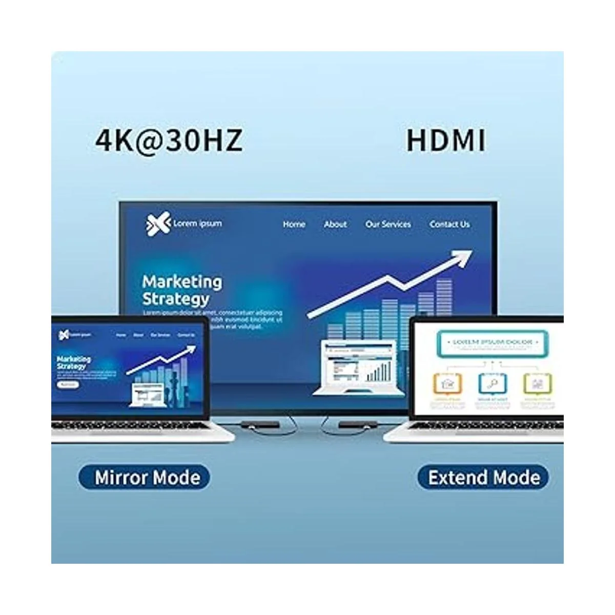 Adaptador USBC a HDMI Conecta tu laptop con el monitor a través del puerto HDMI y luego puedes extender la pantalla en una pantalla más grande. Este adaptador no solo es compatible con modo espejo, sino que también es compatible con modo extendido. La resolución máxima soportada es 3840 x 2160/30 Hz