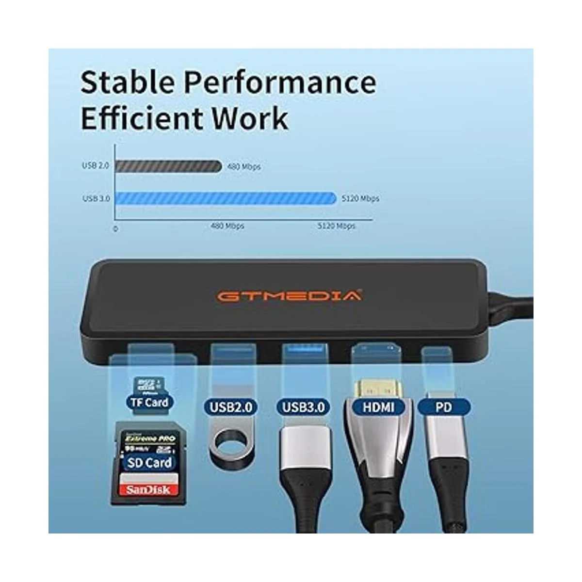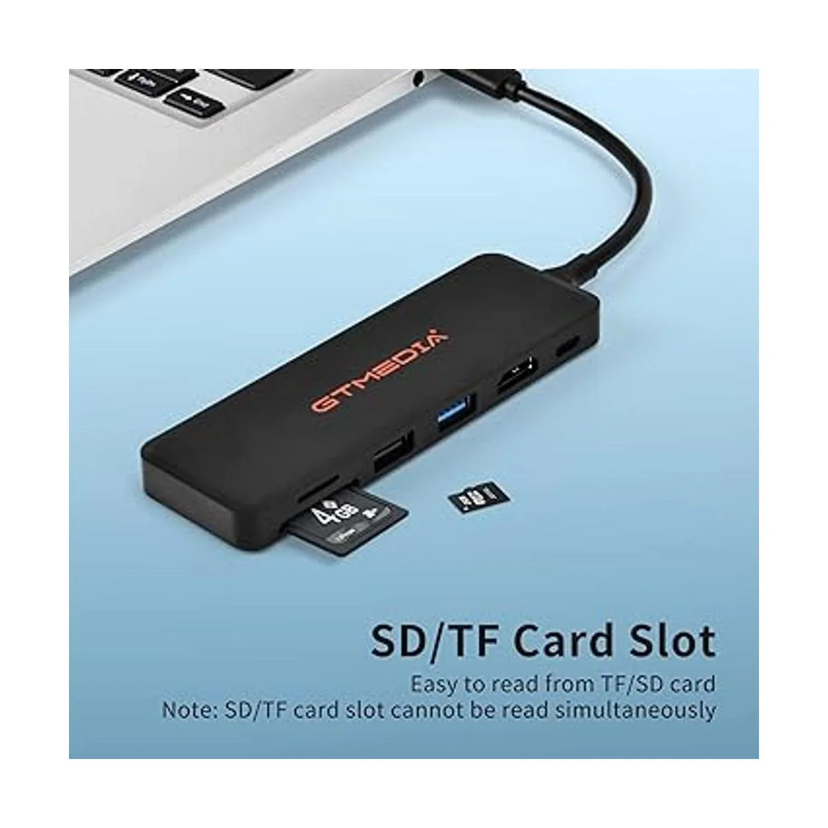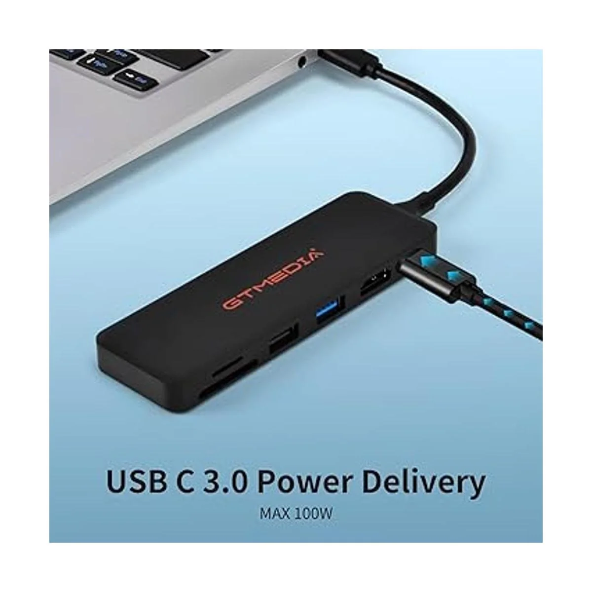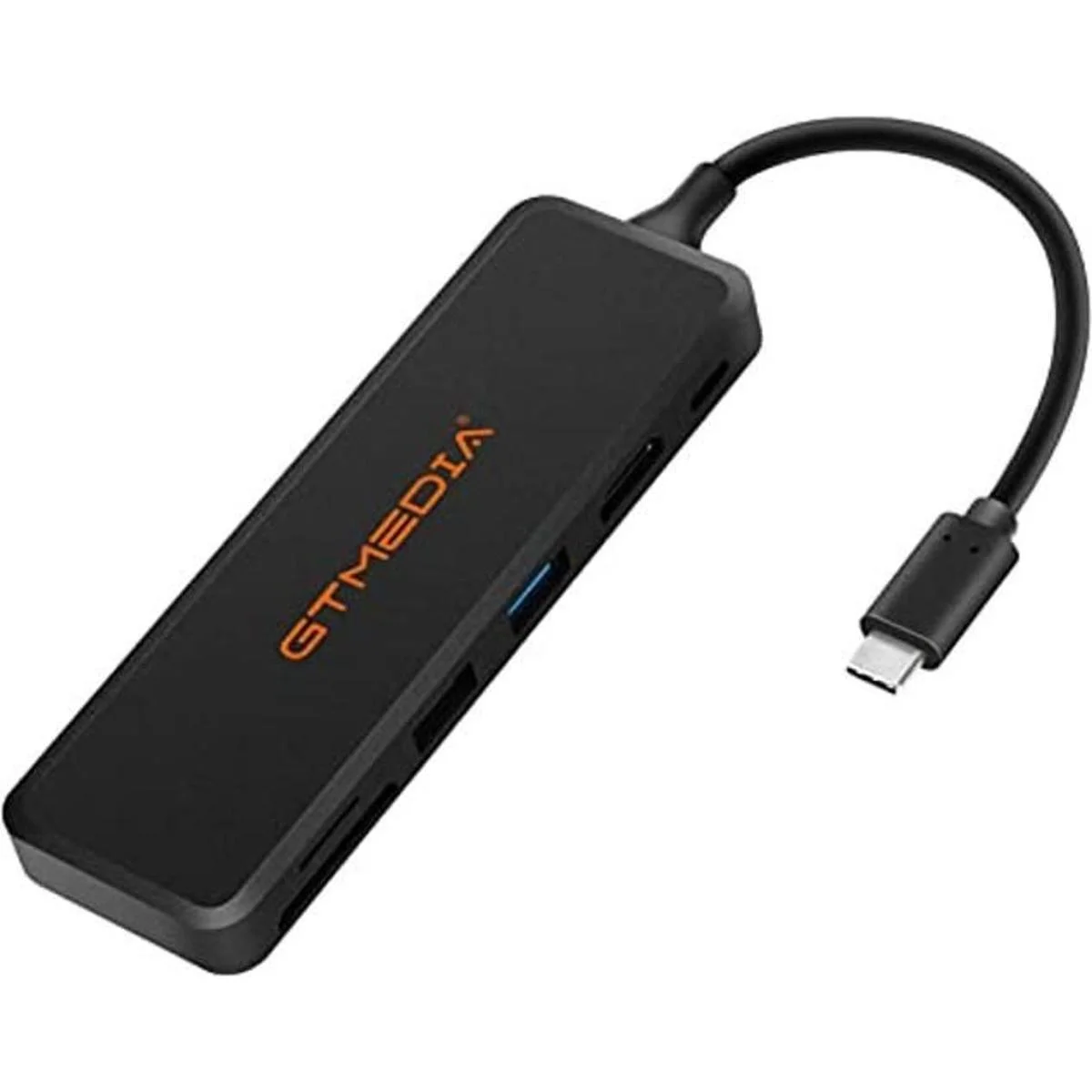 GT MEDIA Adaptador USBC Hub con puerto de carga PD de 100 W, HDMI 4K, hub de transferencia de datos tipo C de 6 puertos con lector de tarjetas SDTF, color negro