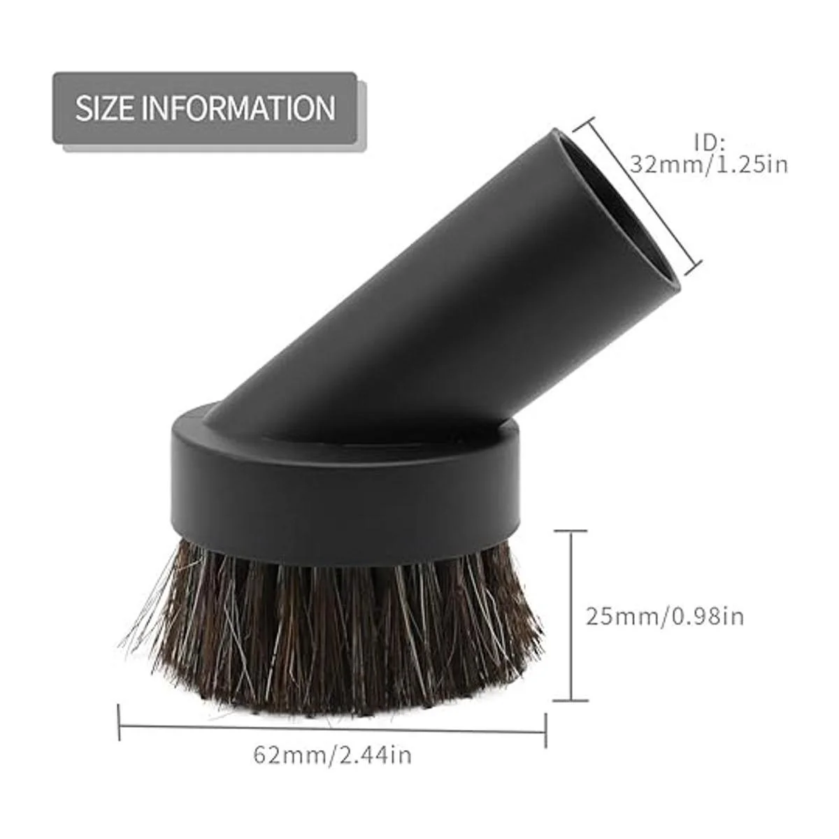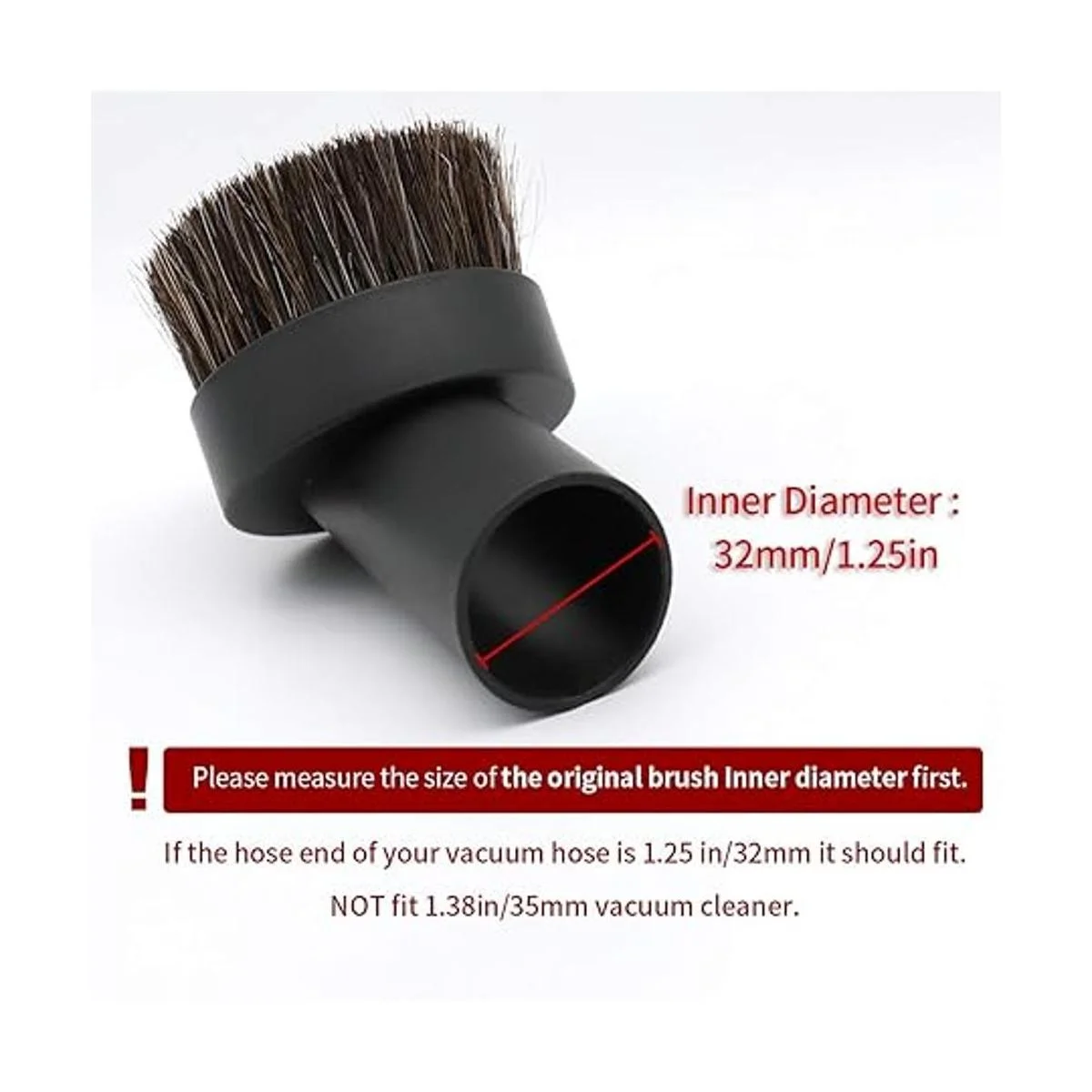 Información sobre el tamaño: adecuado para montantes que tienen mangueras de fijación, la mayoría de aspiradoras de recipiente y todos los sistemas de vacío central. Mide primero el tamaño del cepillo original y el diámetro interior del cepillo. Si el extremo de la manguera de tu aspiradora es de 1.260 in, debería encajar. No es compatible con aspiradoras de 1.378 in